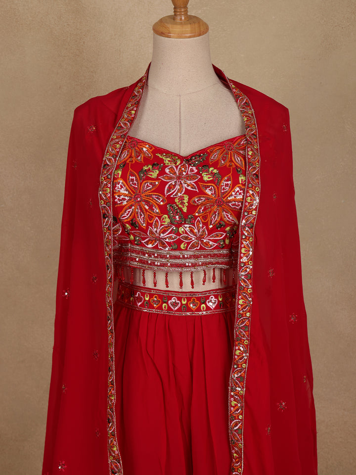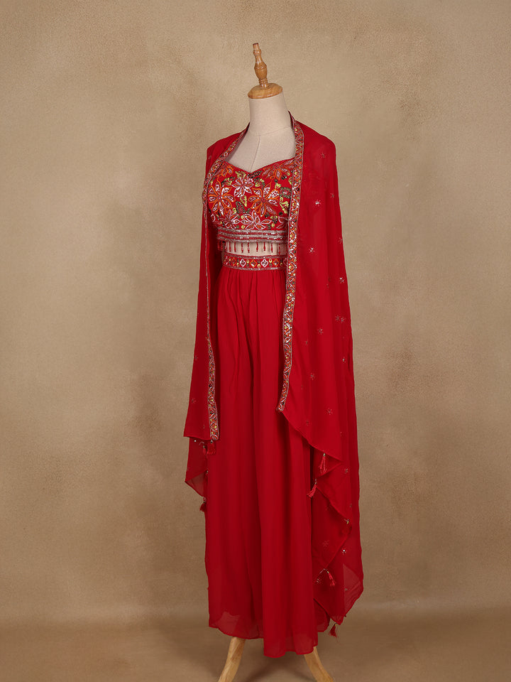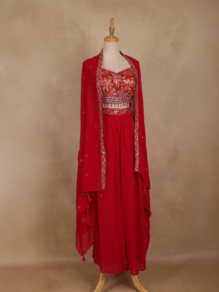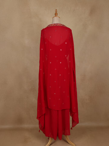 Queen Pink Floral Embroidered Design Georgette Palazzo Suit with Dupatta