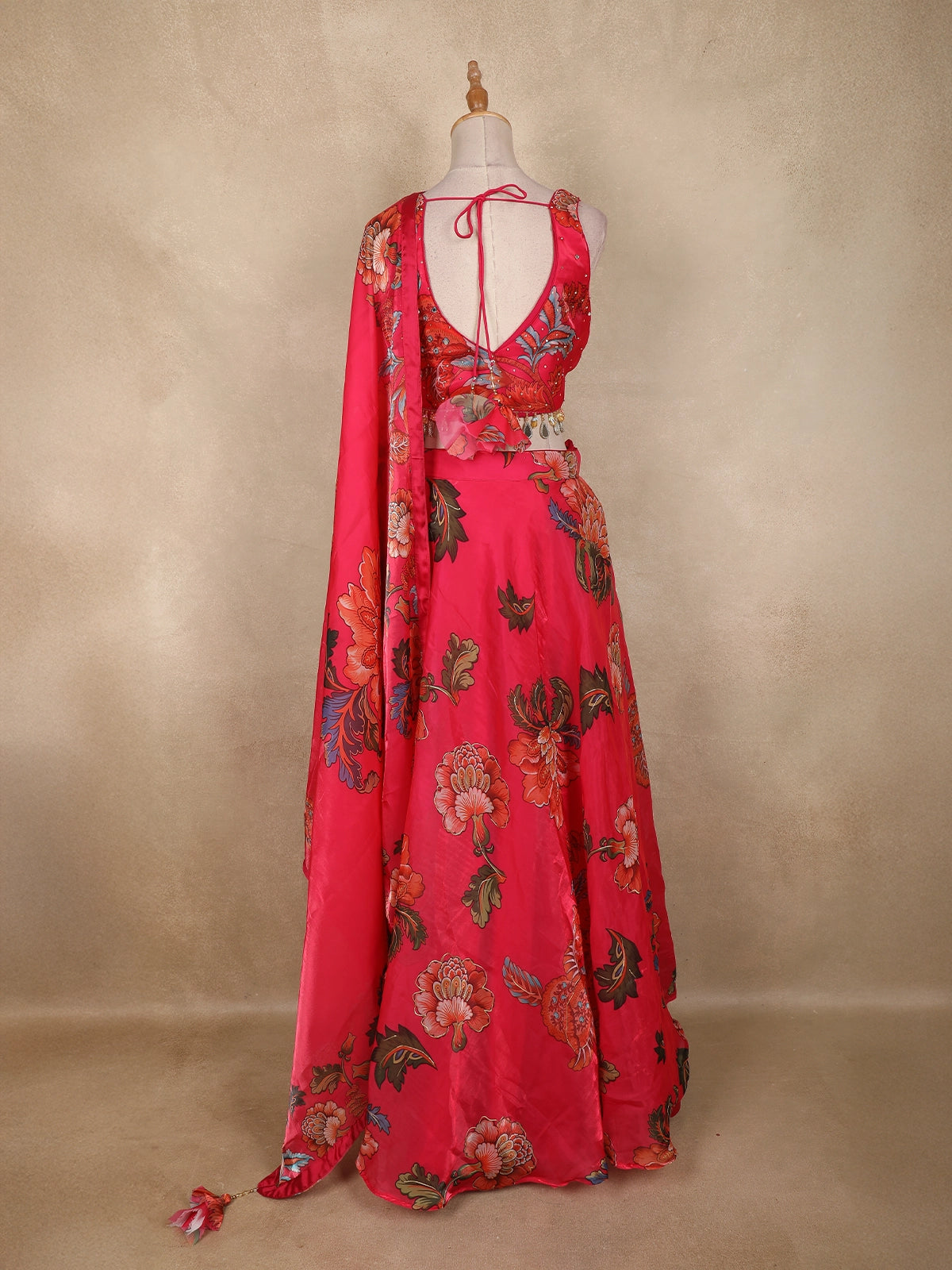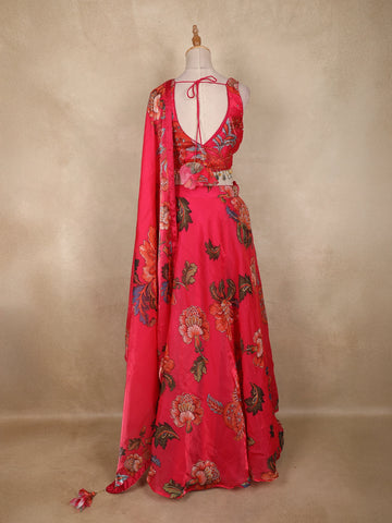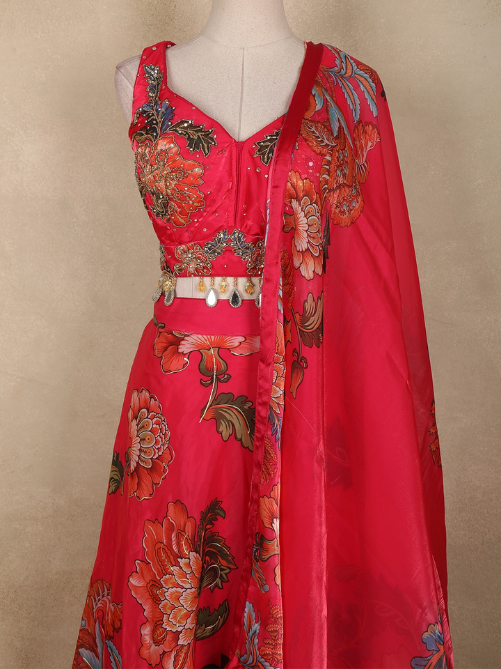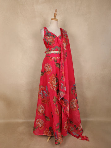 Queen Pink Floral Printed Design Organza Lehenga with Dupatta