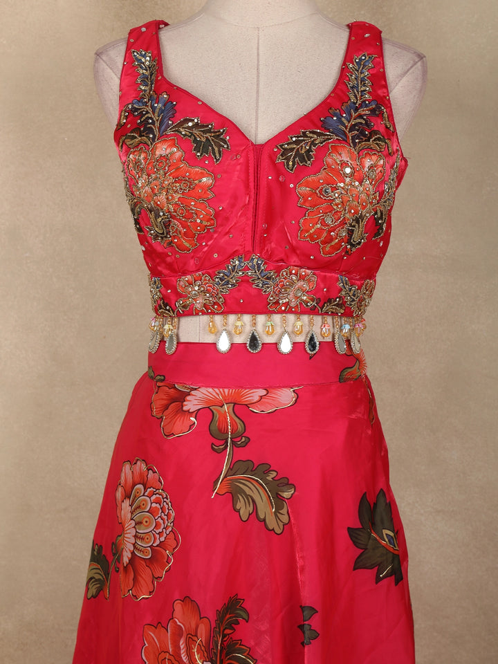 Perfect for sangeets, receptions, festive gatherings, or daytime celebrations, this lehenga captures the essence of modern femininity — vibrant, artistic, and undeniably sophisticated. The airy silhouette ensures comfort, while the richly printed detailing ensures you stand out in style.