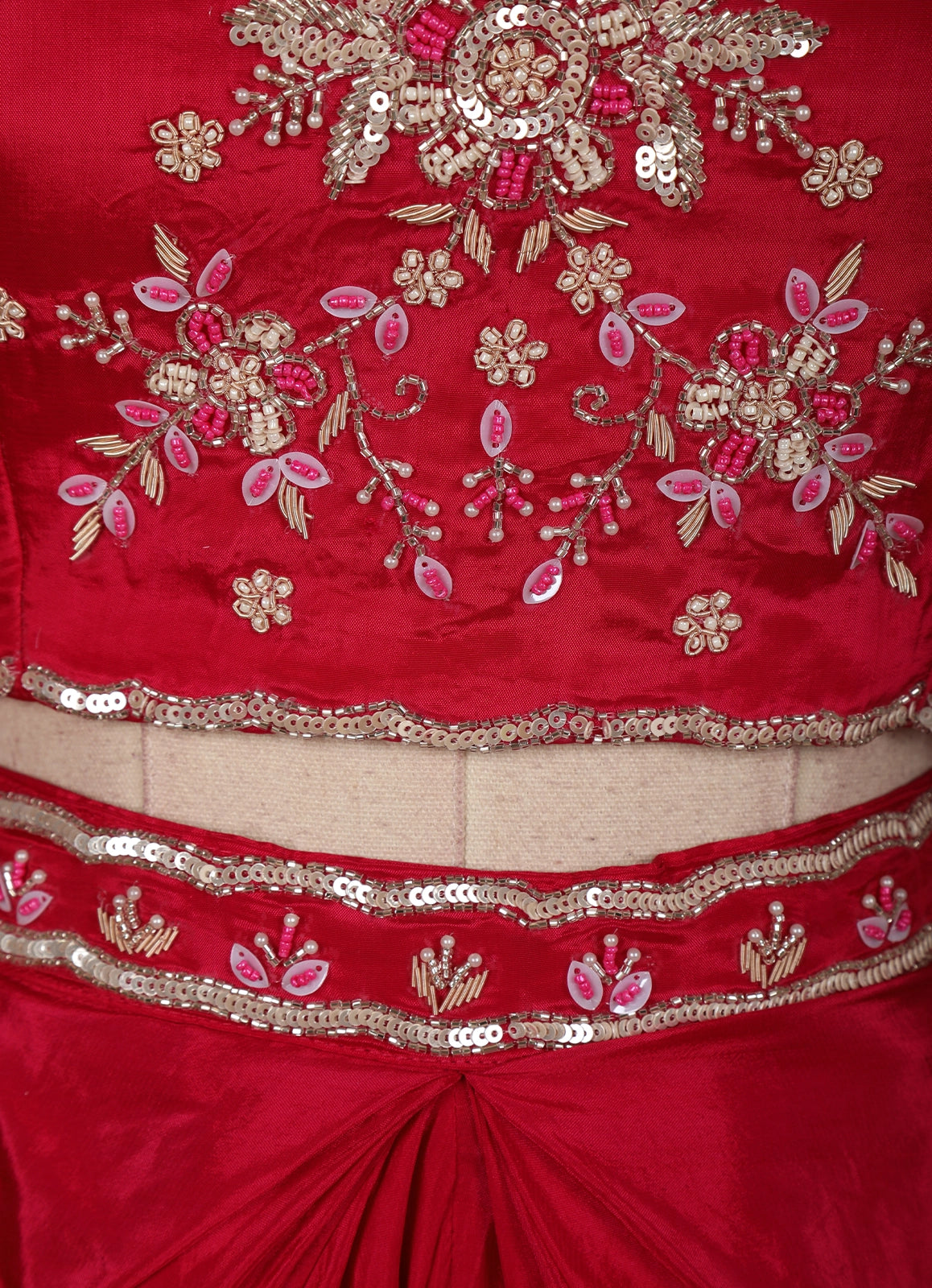 Queen Pink Floral Sequins and Beads Embroidered Design Crepe Silk Skirt Top