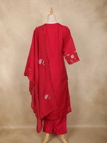 Queen Pink Floral Thread Embroidered Cotton Salwar Suit with Dupatta