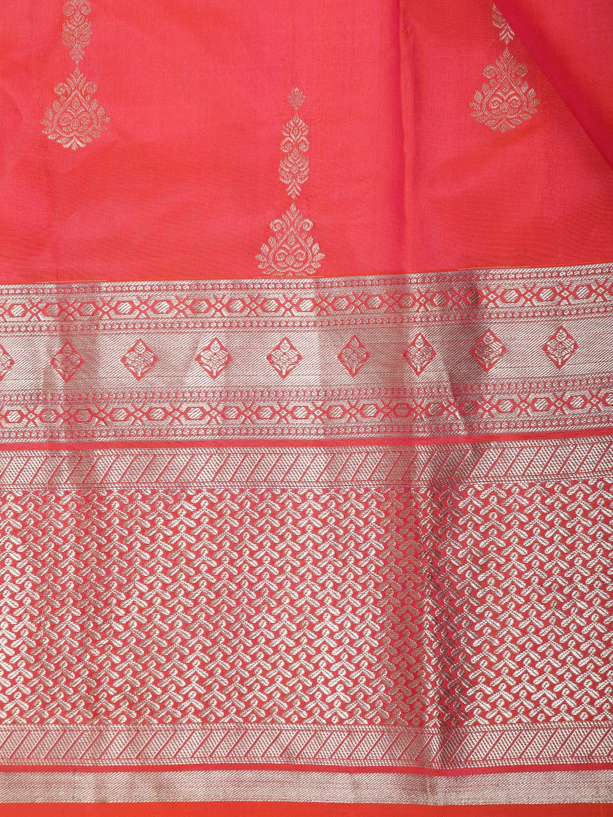Elevate your ethnic wardrobe with this exquisite Queen Pink Kanchipuram Silk Saree, a timeless creation that blends regal colour tones with traditional craftsmanship. Woven from luxurious pure silk, the saree features elegant floral butta motifs delicately spread across the body, lending it a graceful and feminine charm.