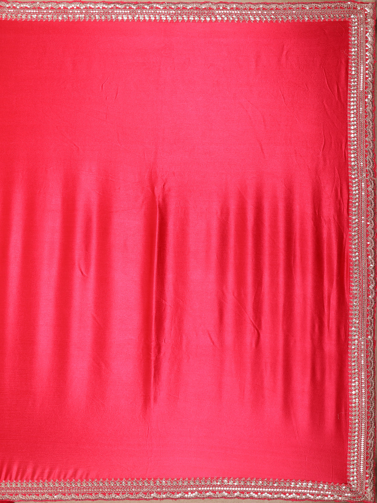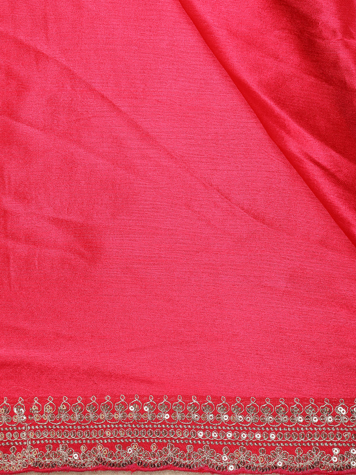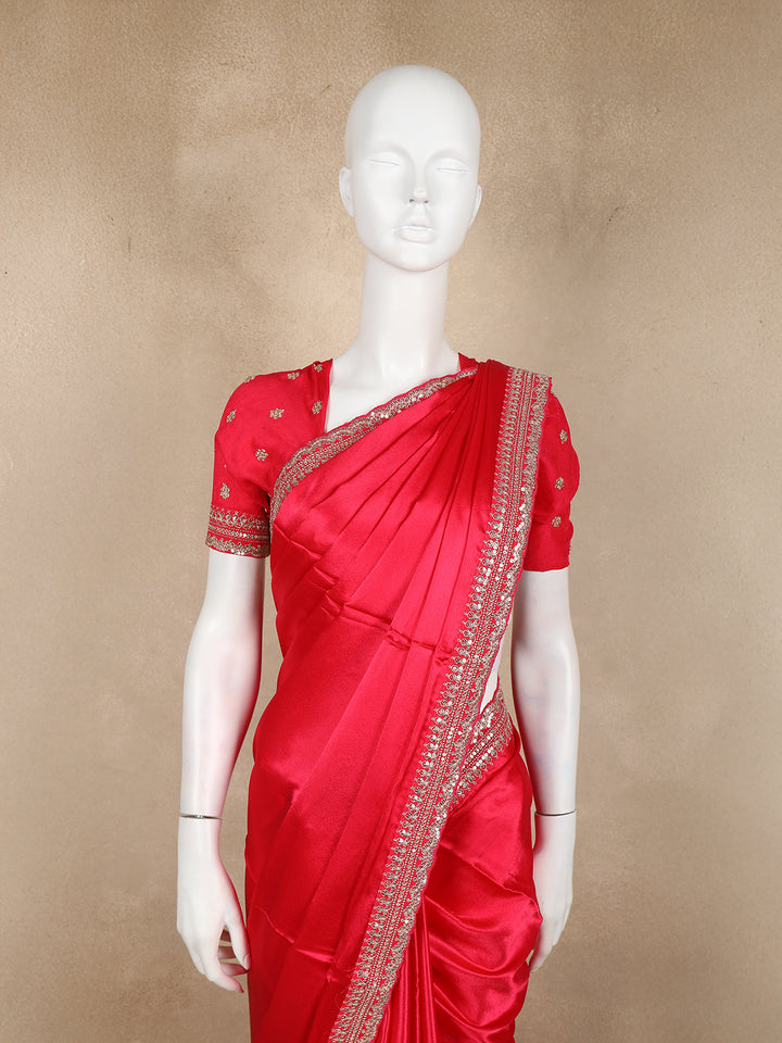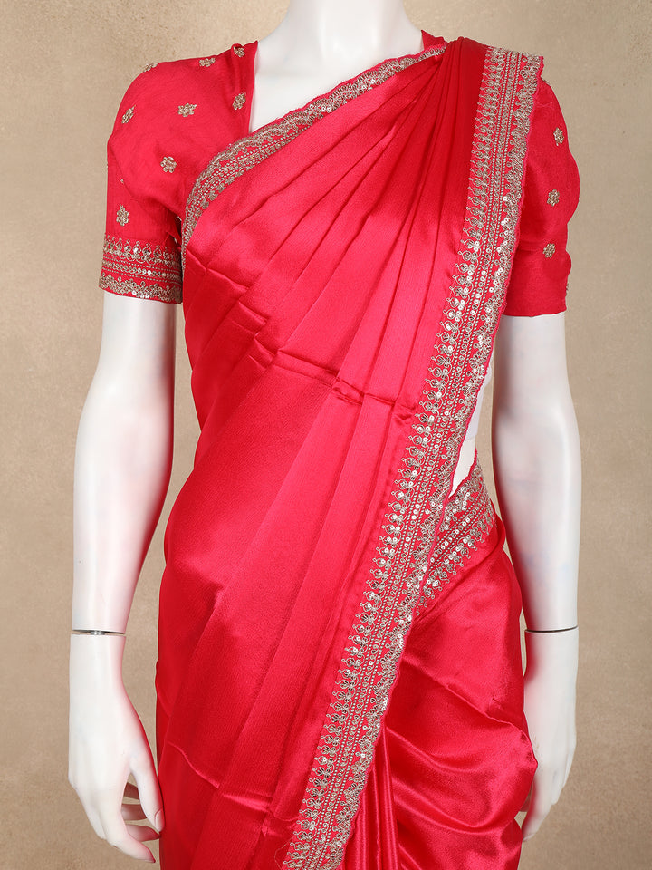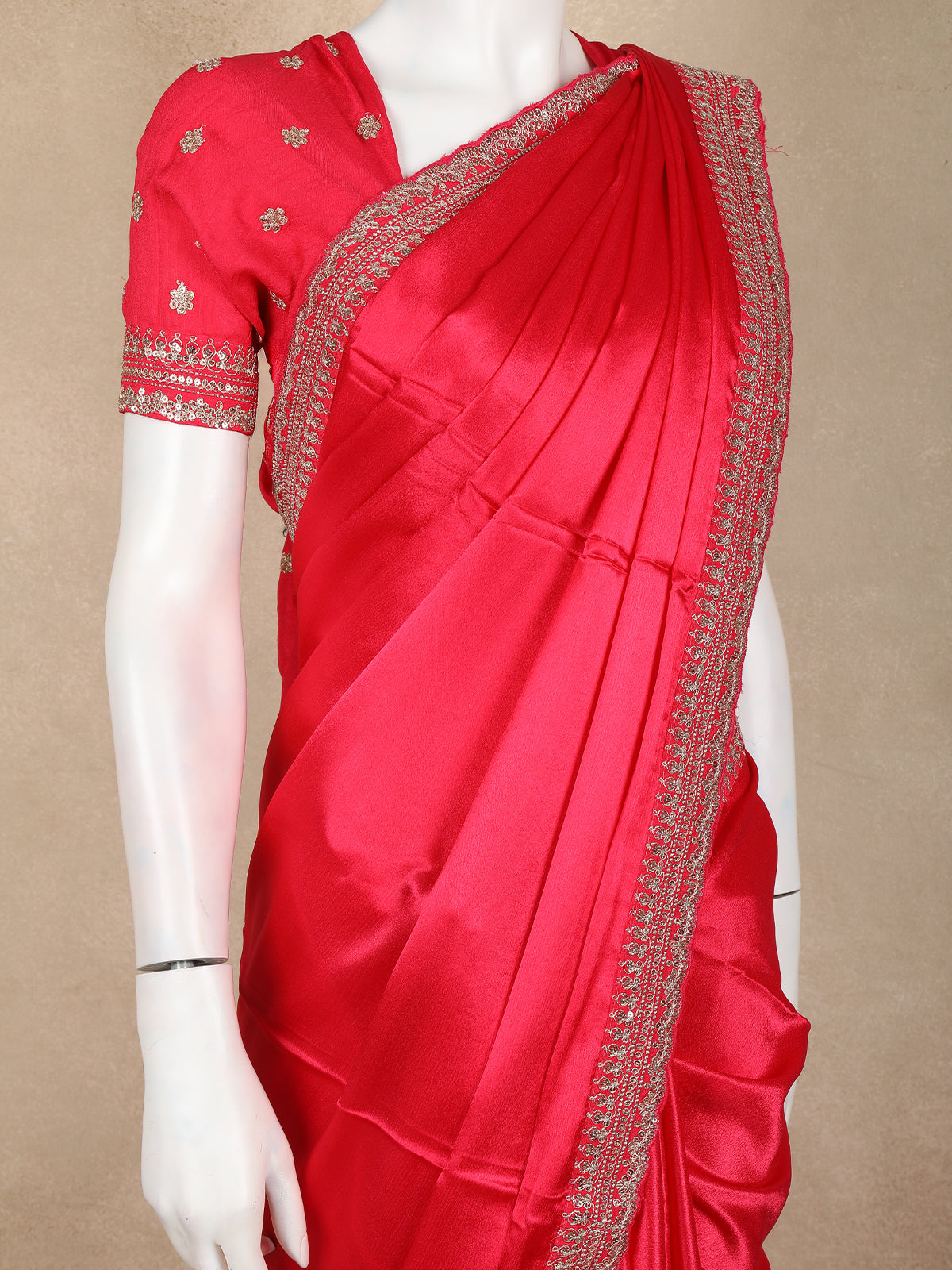 Drape yourself in timeless elegance with this Queen Pink Satin Saree, a striking ensemble that redefines classic sophistication. Crafted from rich, flowing satin fabric, the saree boasts a luxuriously plain body that shimmers subtly with every movement, exuding understated glamour.