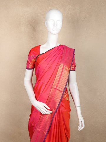 Highlighted with a rich zari border and a coordinating zari pallu, this saree brings festive grandeur to every movement. Whether styled for weddings, temple ceremonies, or special celebrations, this saree ensures a breathtaking and classy appearance.