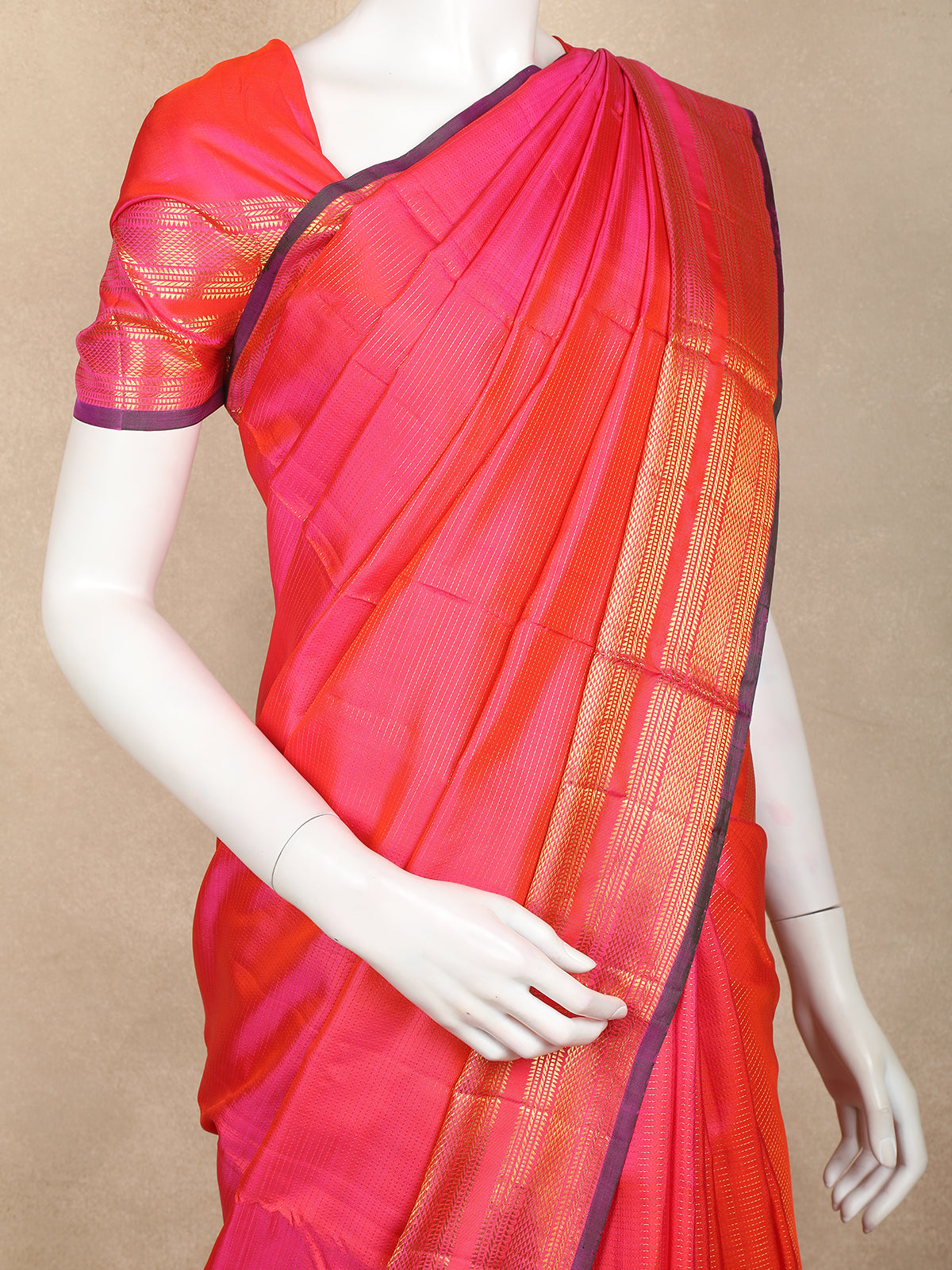 Queen Pink Stripes Woven Kanchipuram Silk Saree