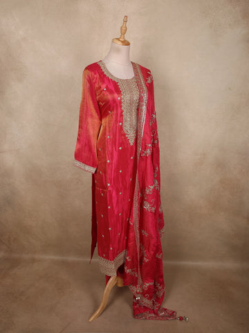 Radiant Rani Pink Floral Zari Embroidered Design Organza Straight Cut Salwar Suit