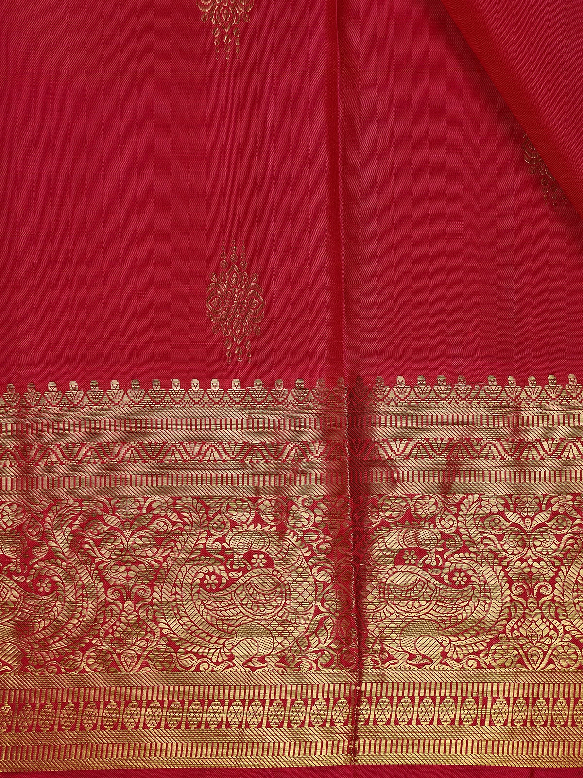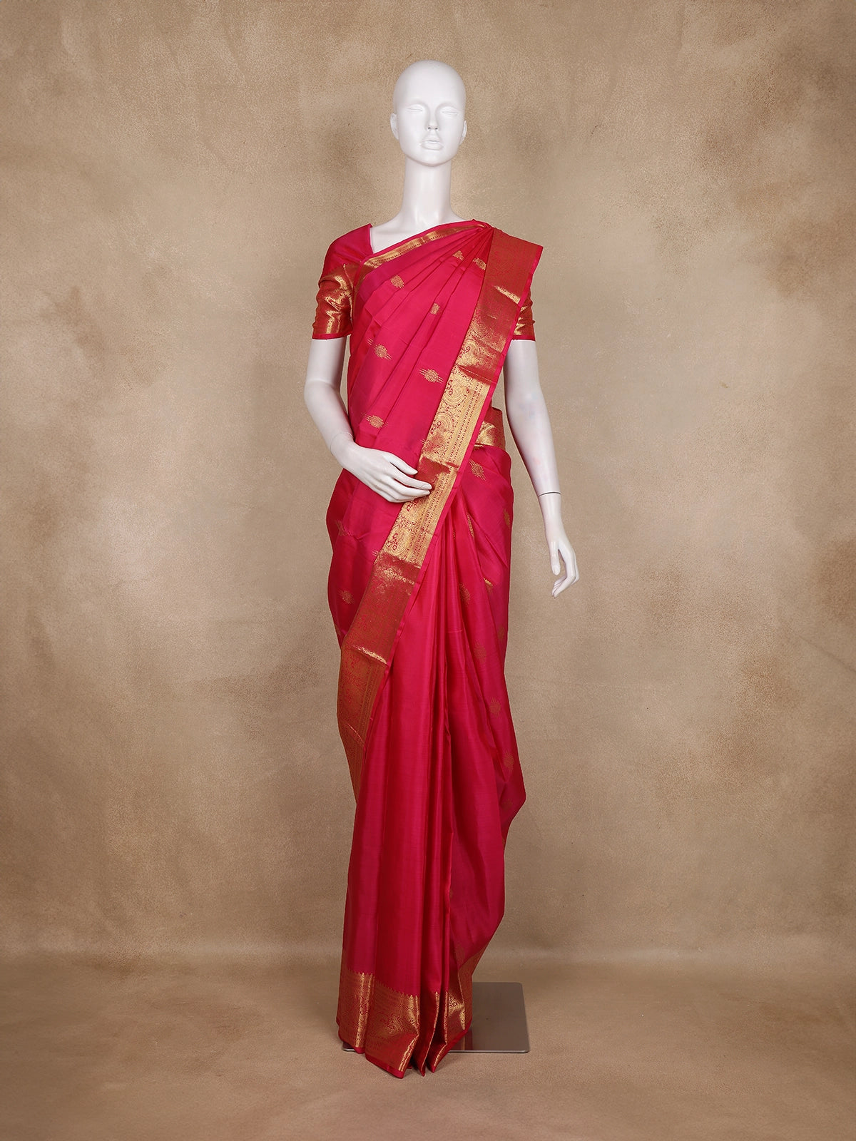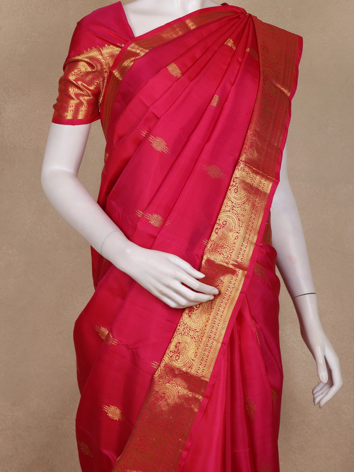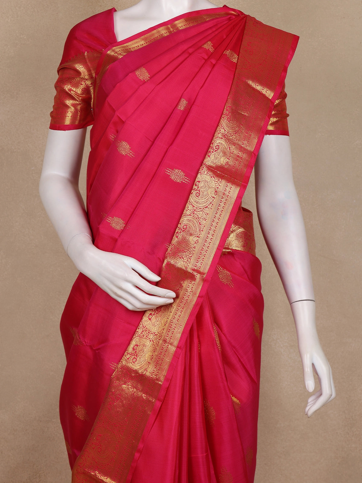 Rani Pink Butta Woven Kanchipuram Silk Saree with Rich Zari Border