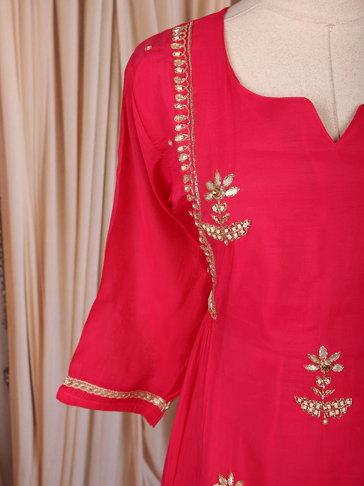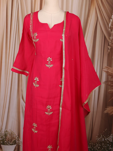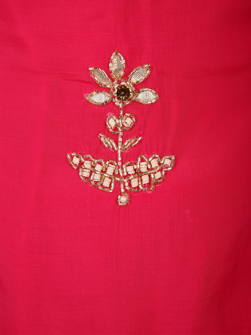 Rani Pink Floral Beads Embroidered Cotton Salwar with Dupatta