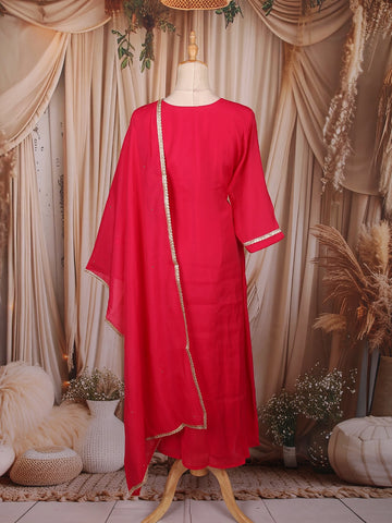 Embrace understated elegance with this Rani Pink Cotton Salwar Suit, exquisitely highlighted with Beads floral embroidery along the neckline and front panel. Crafted from soft cotton, it offers breathable comfort while maintaining a refined festive charm. The matching dupatta features delicate sequin accents and a zari lace border, completing this graceful ensemble—perfect for festive gatherings, casual celebrations, or traditional events.