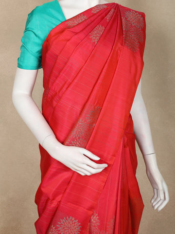 Rani Pink Floral Design Kanchipuram Silk Saree With Solid Border