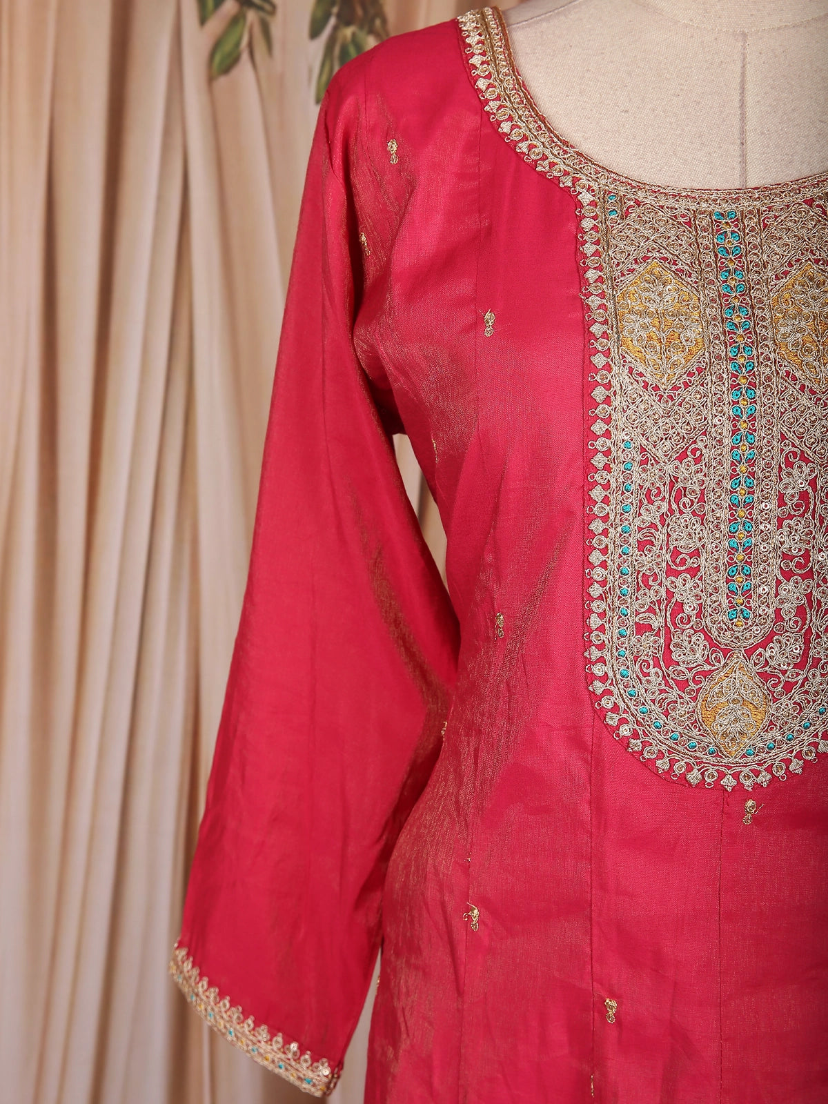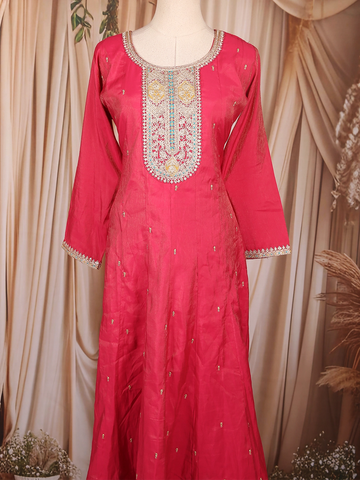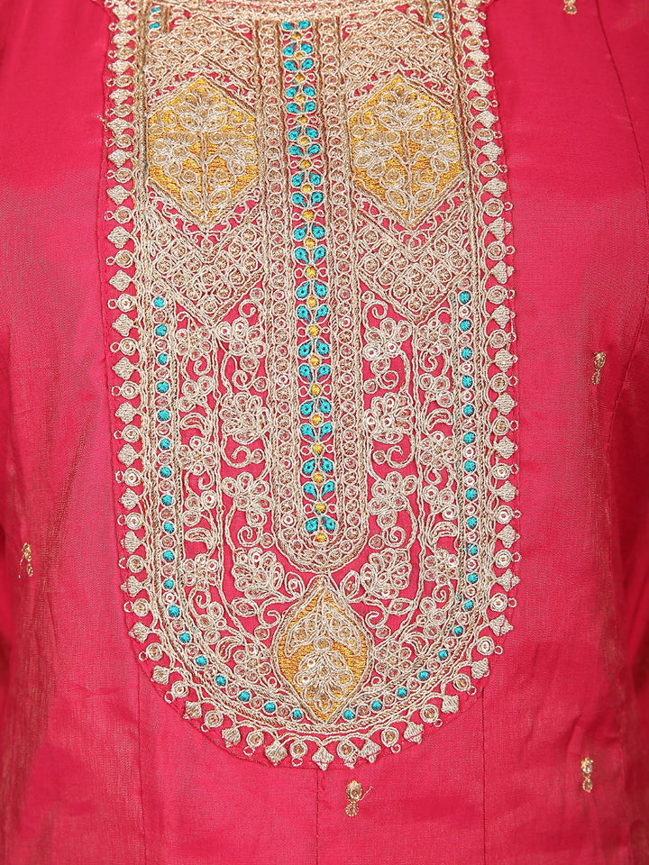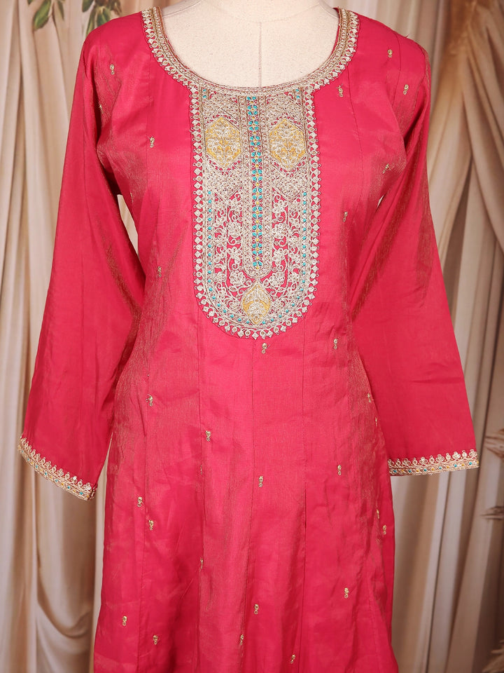 Rani Pink Floral Embroidered Silk Cotton Salwar Suit
