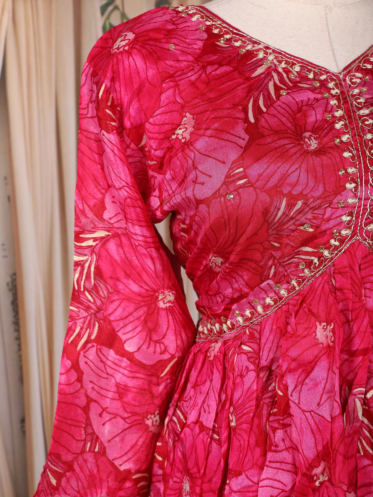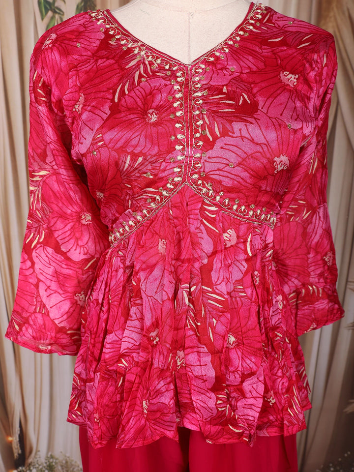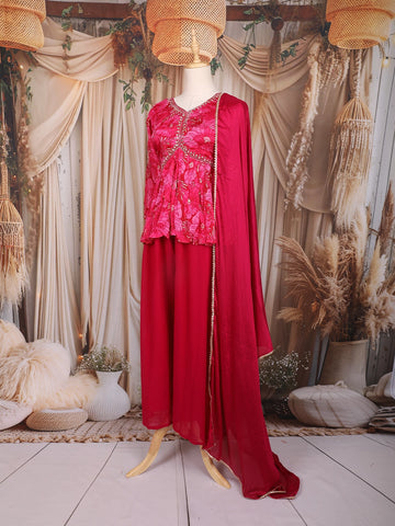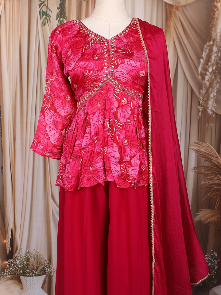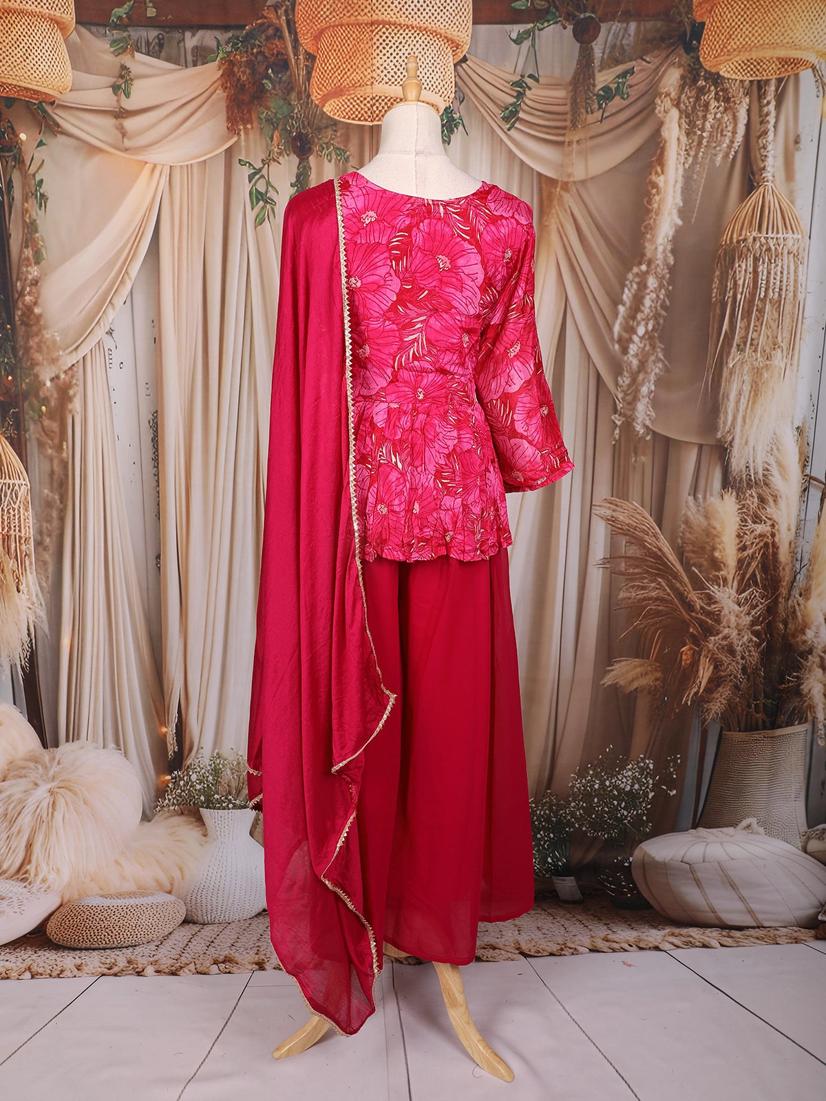 Rani Pink Floral Printed Design Peplum Palazzo Suit with Dupatta
