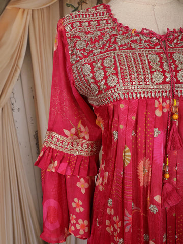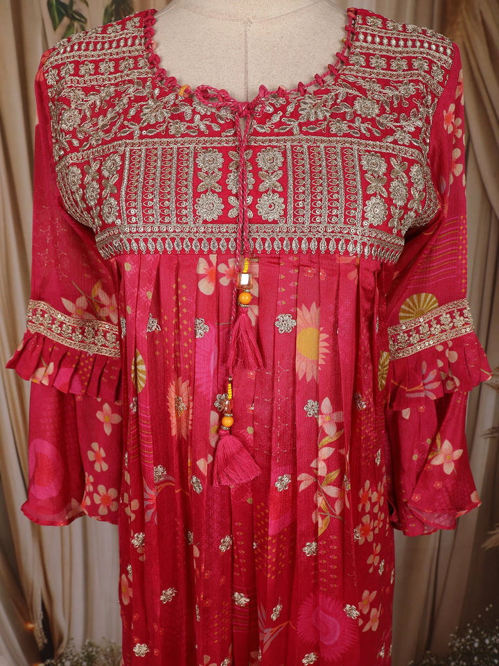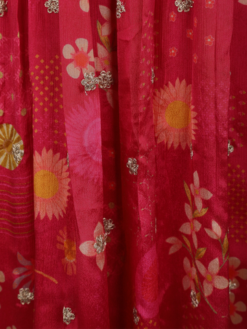 Rani Pink Floral Thread Embroidered Design Chiffon Palazzo Suit