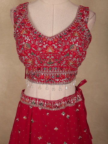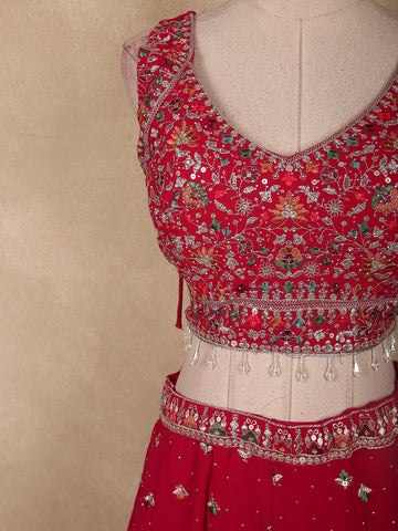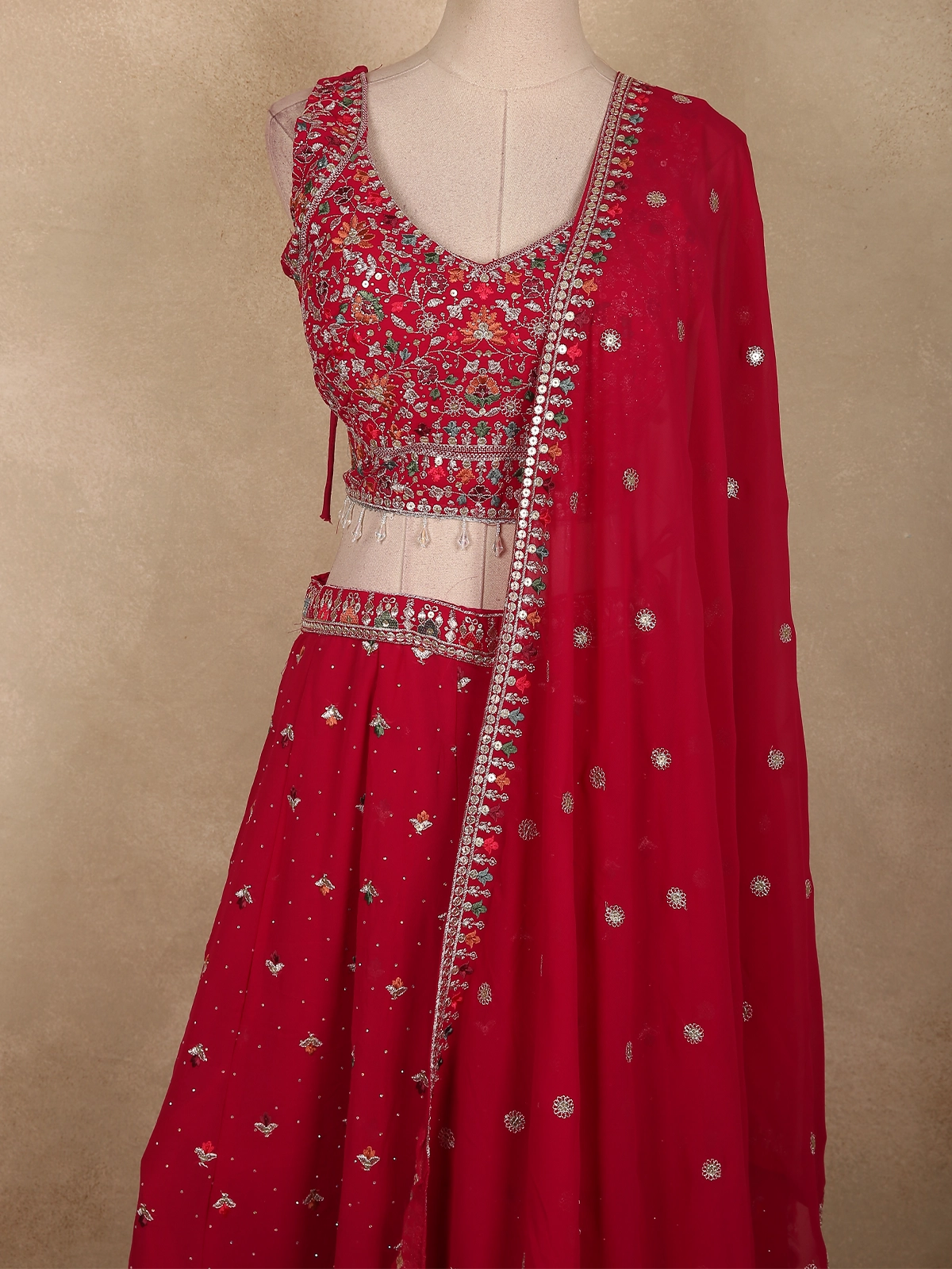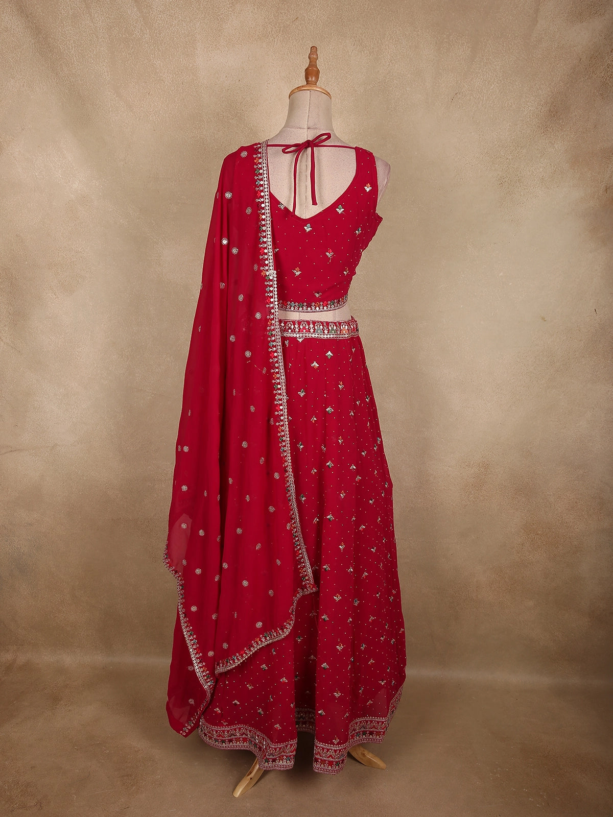Rani Pink Floral Thread Embroidered Design Georgette Lehenga with Dupatta