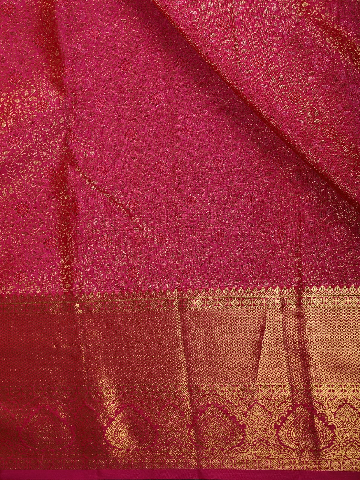 Rani Pink Floral Woven Design Pure Kanchipuram Silk Saree