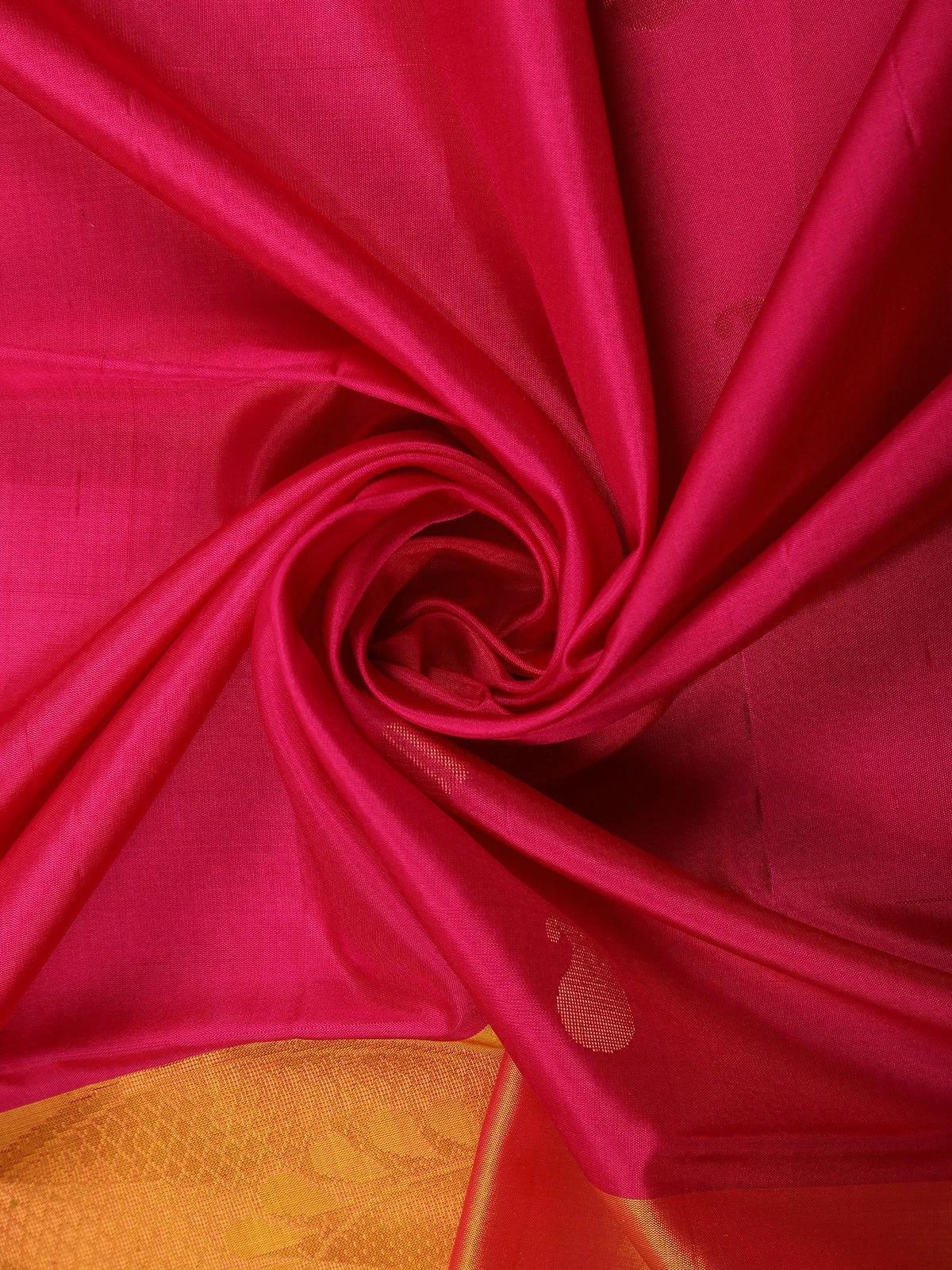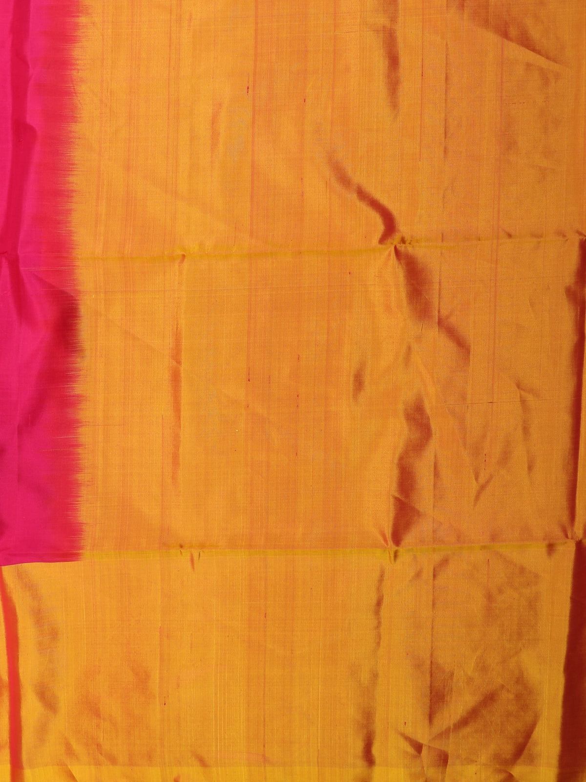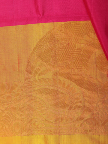 Rani Pink Solid Design Soft Silk Saree with Contrast Yellow Zari Border