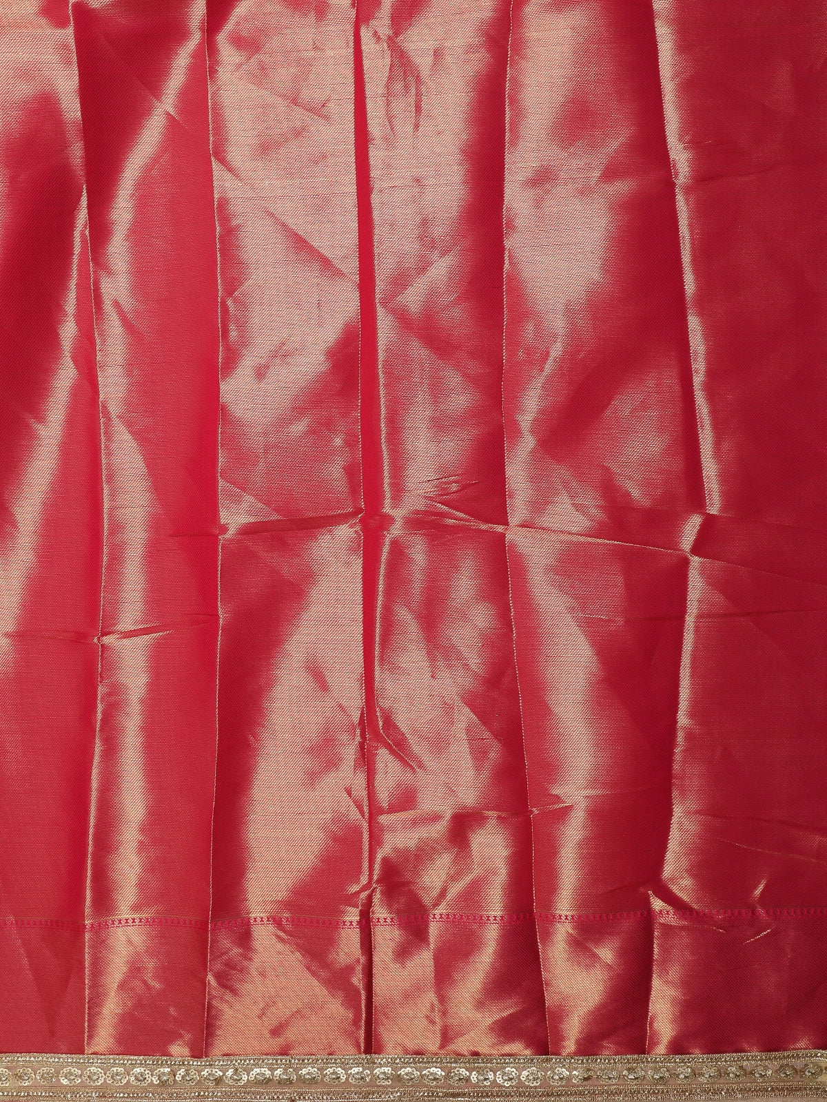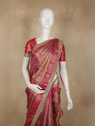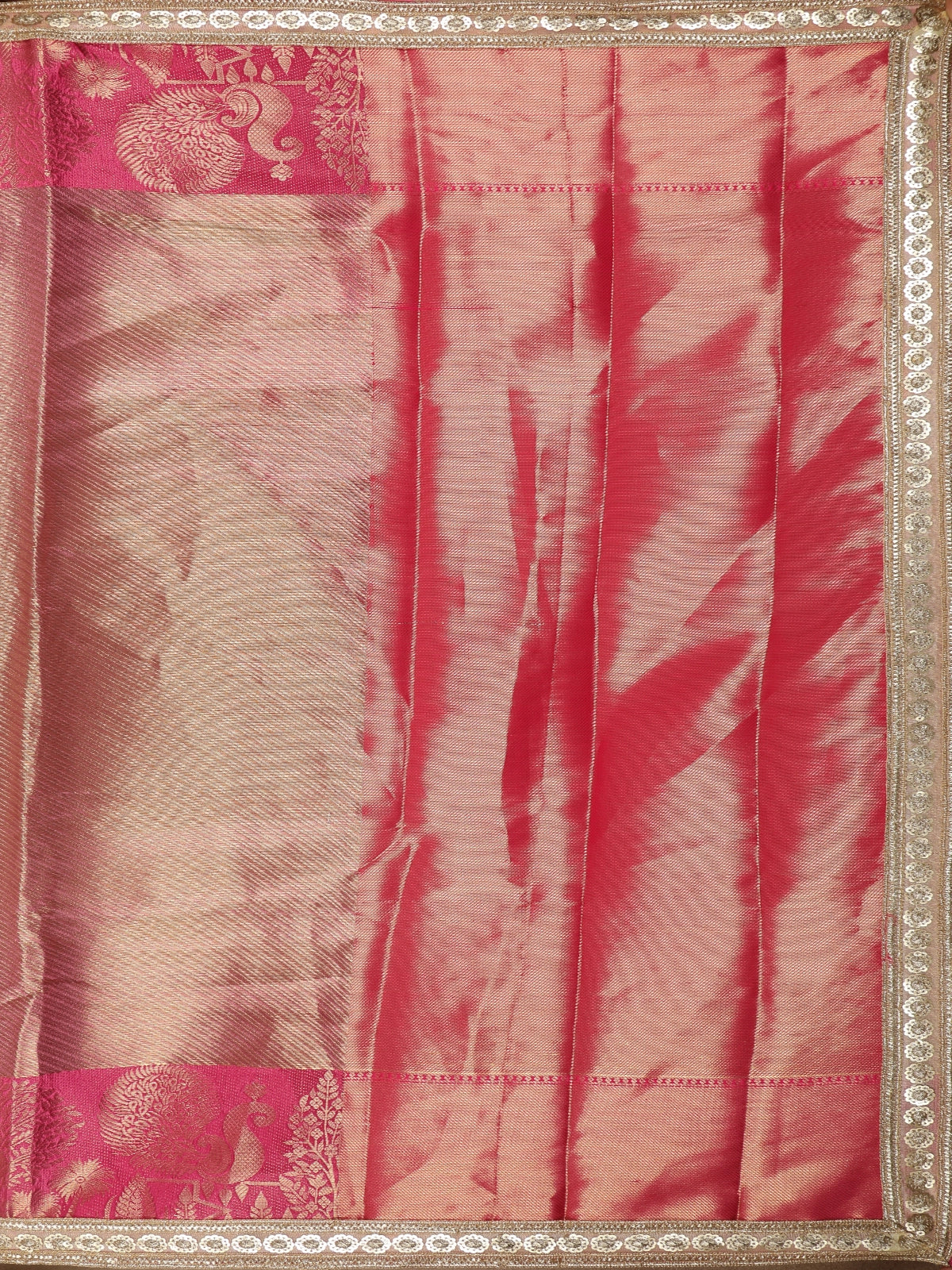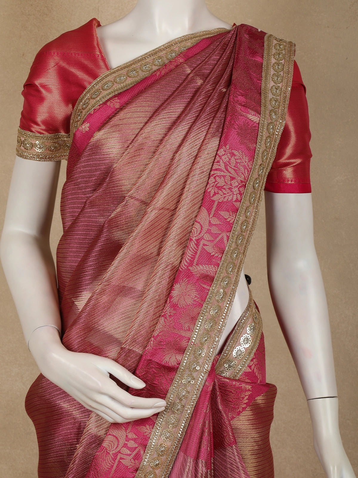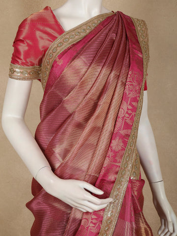 Rani Pink Zari Woven Design Tissue Silk Saree with Designer Border