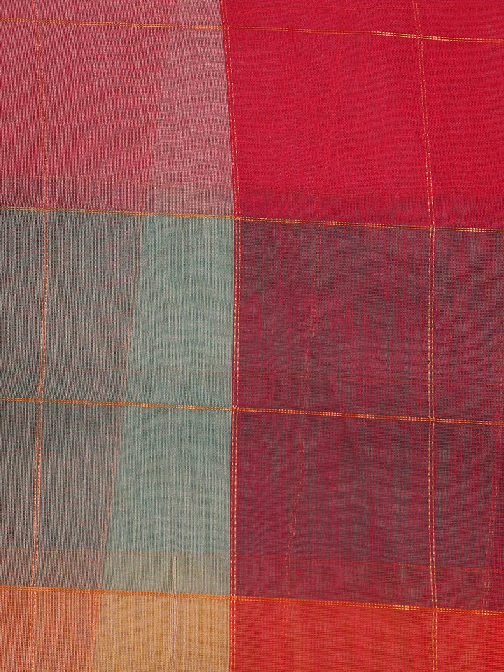 Red and Grey Checked Design Cotton Saree with Contrast Border