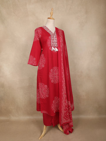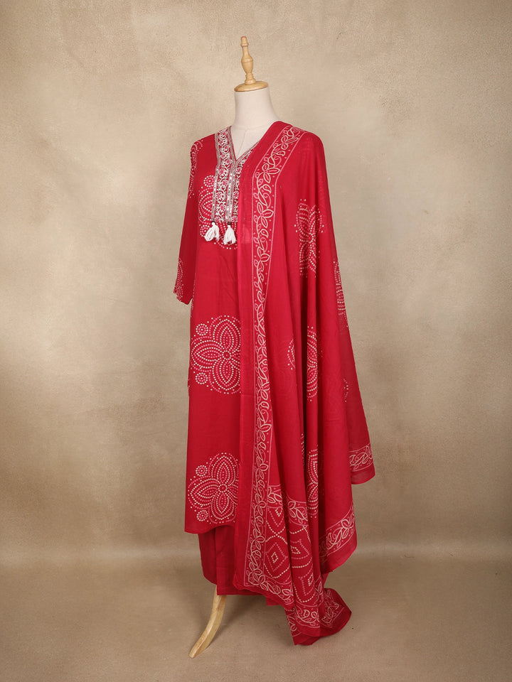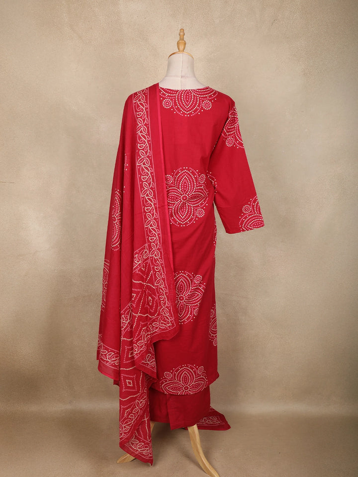 Red Bandhani Printed Cotton Salwar Suit with Dupatta