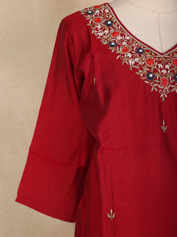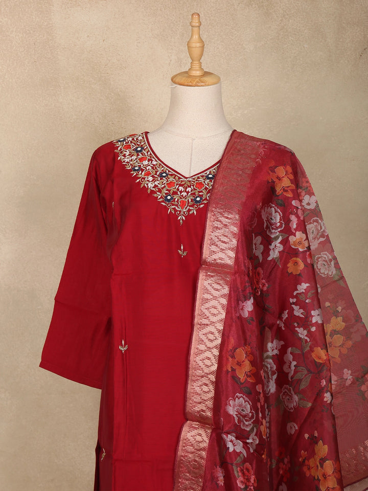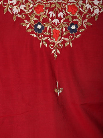 Red Floral Embroidered Design Cotton Straight Cut Salwar Suit