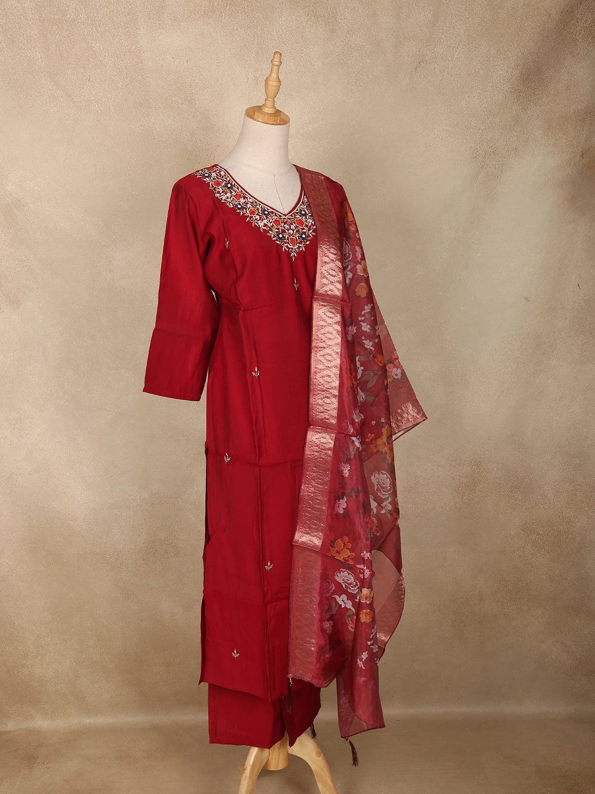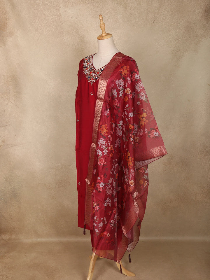 Make a timeless statement of grace and sophistication with this Red Beads Embroidered Cotton Straight Cut Salwar Suit, a stunning ensemble that captures traditional charm with a touch of modern finesse. The deep red hue exudes festive vibrancy and elegance, perfect for celebrations, family gatherings, and cultural occasions.