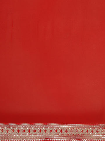 The matching red blouse and pallu ensure a harmonious look, while the classic zari border adds a refined touch of grandeur. Crafted from authentic Banarasi silk, the saree showcases a natural sheen, smooth drape, and luxurious texture, making it an exquisite choice for festive occasions, weddings, and grand celebrations.