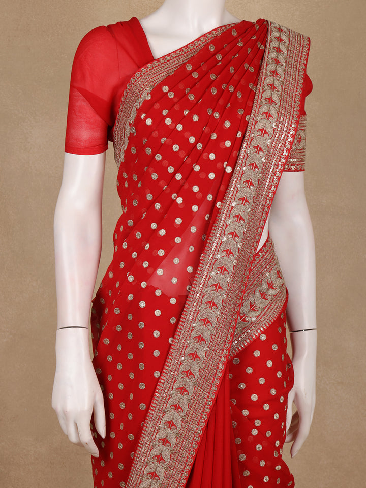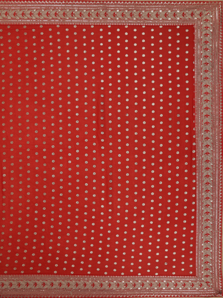 Grace your festive moments with this radiant Red Banarasi Silk Saree, a timeless drape that beautifully captures the essence of tradition. Adorned with woven butta motifs throughout the body, this saree brings together intricate craftsmanship and a regal charm.