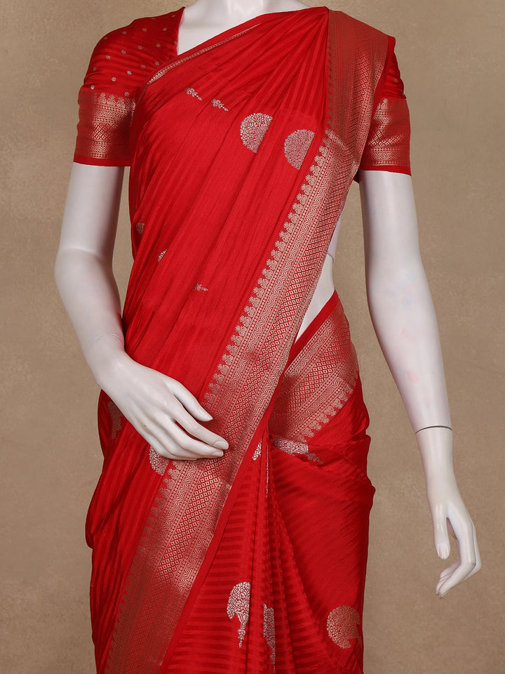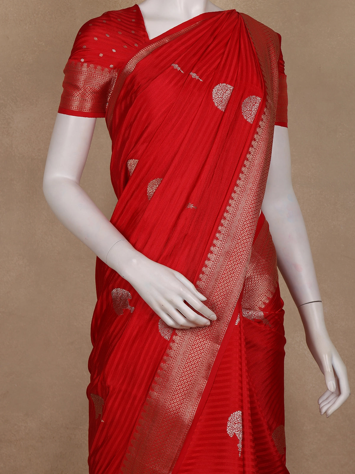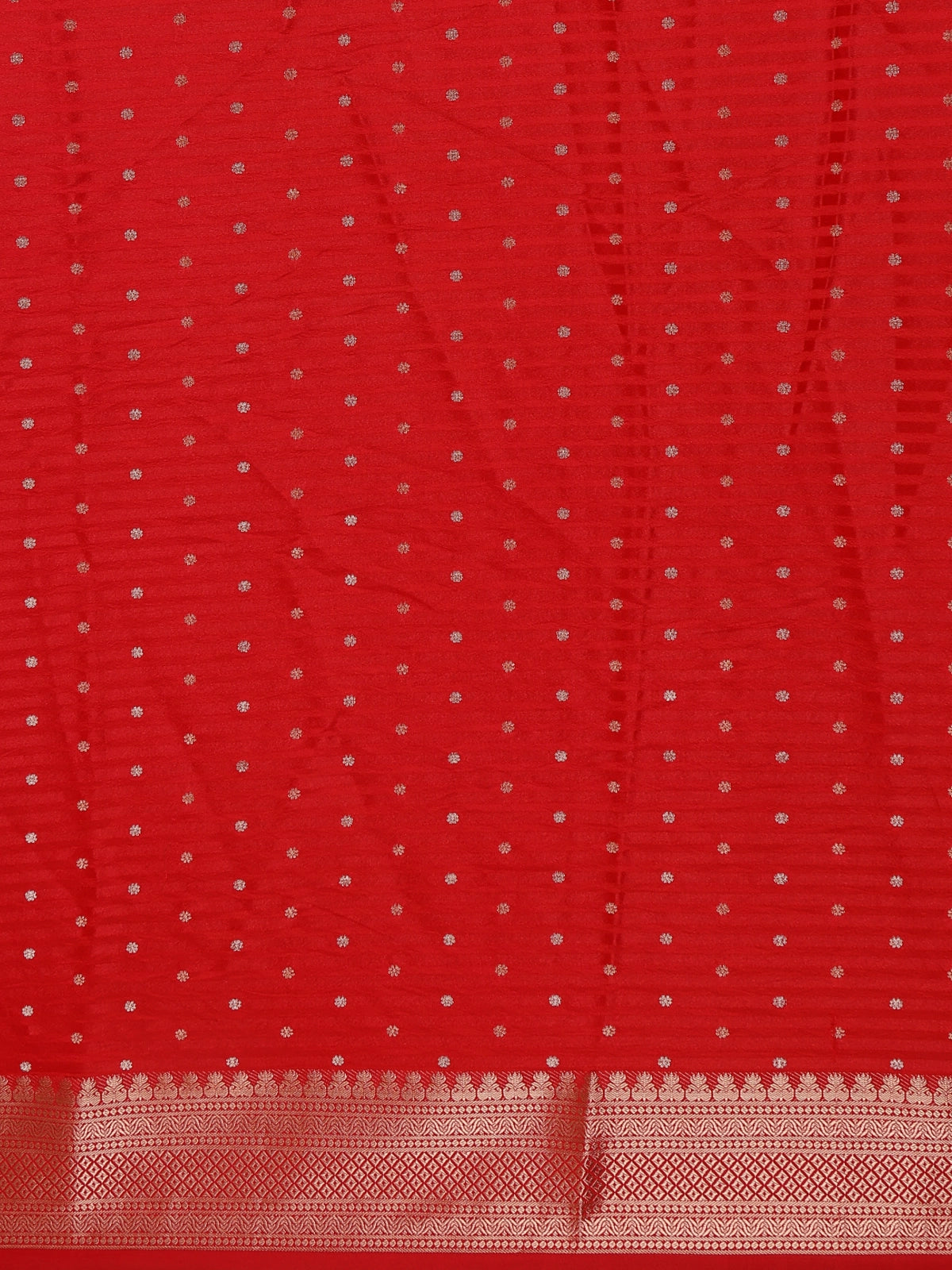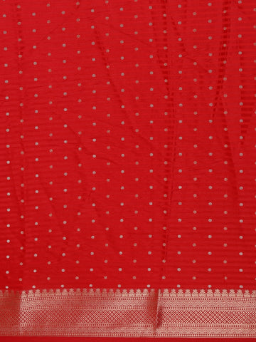 Red Butta Woven Design Semi Banarasi Saree wit Zari Border