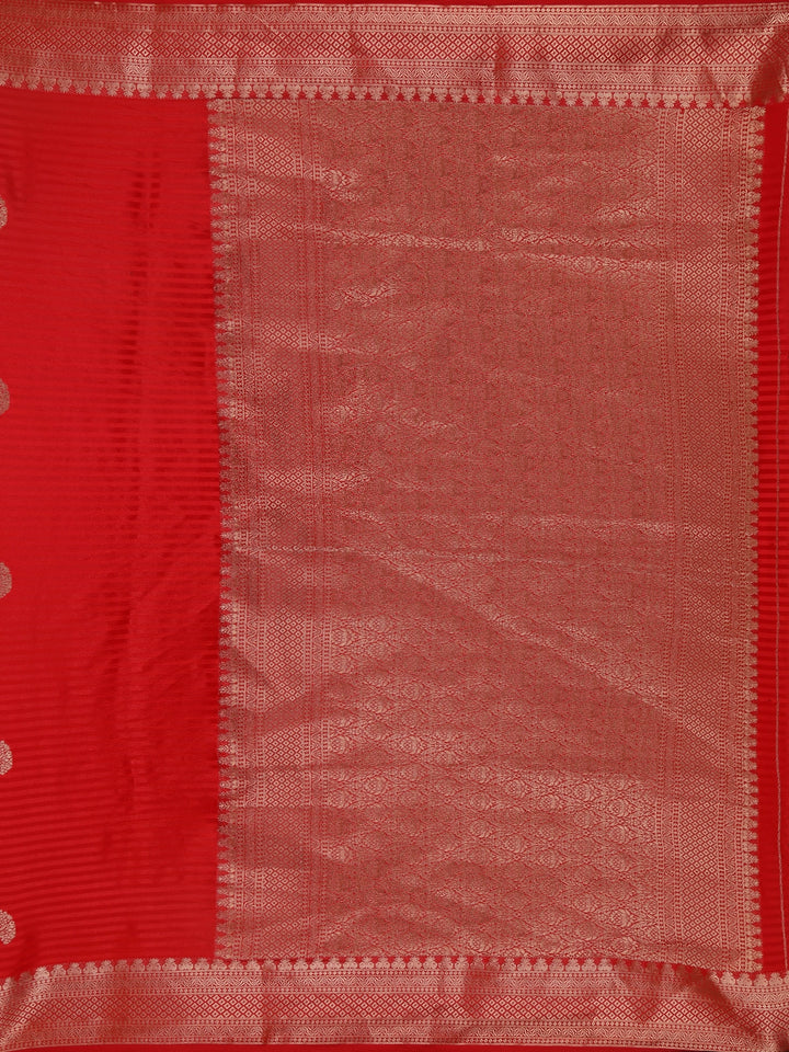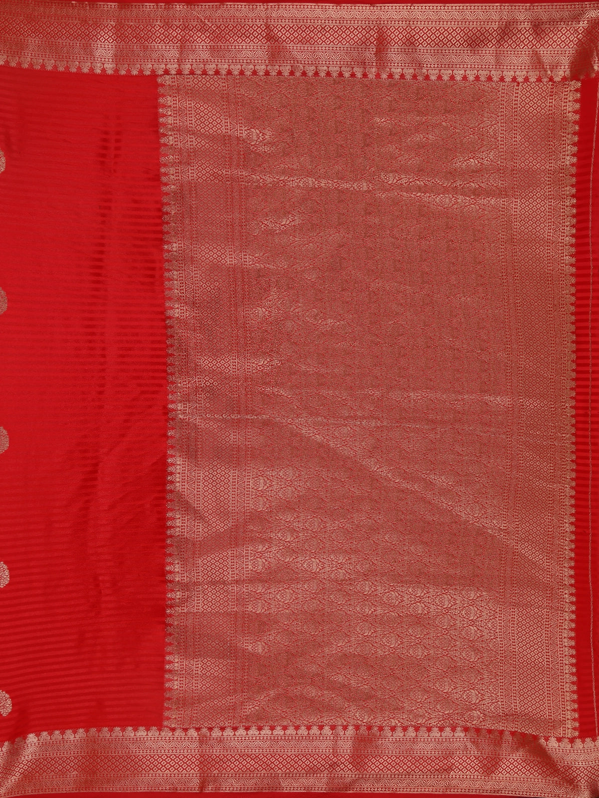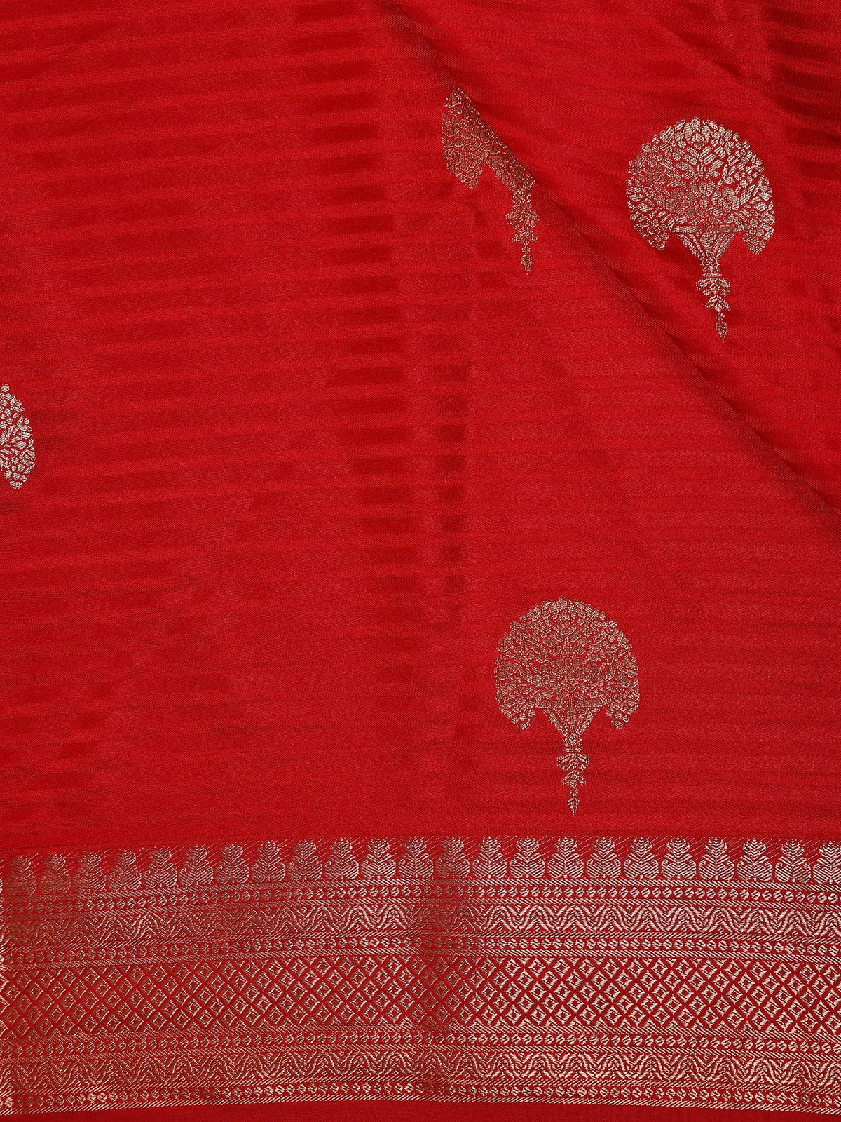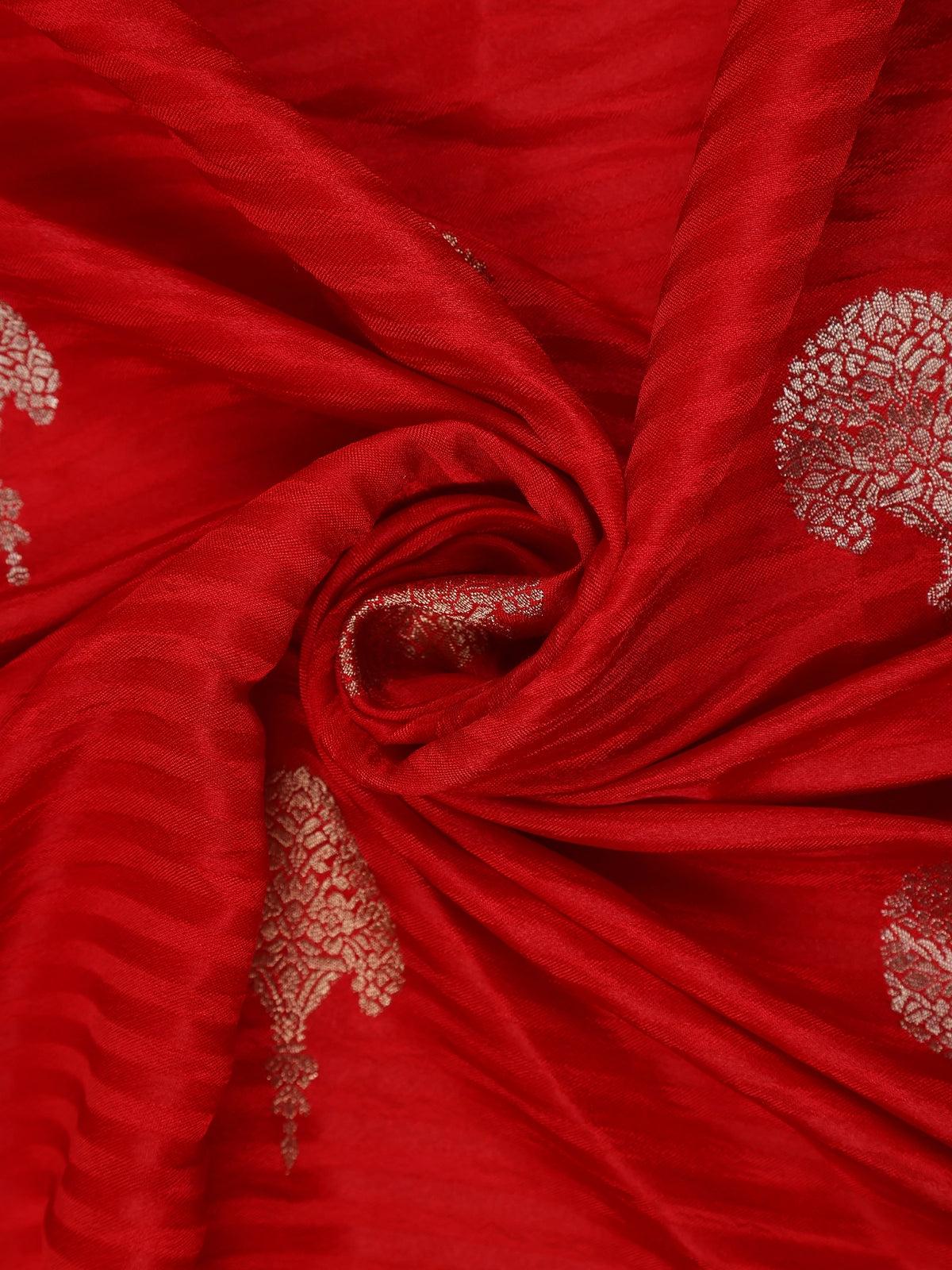 Red Butta Woven Design Semi Banarasi Saree wit Zari Border