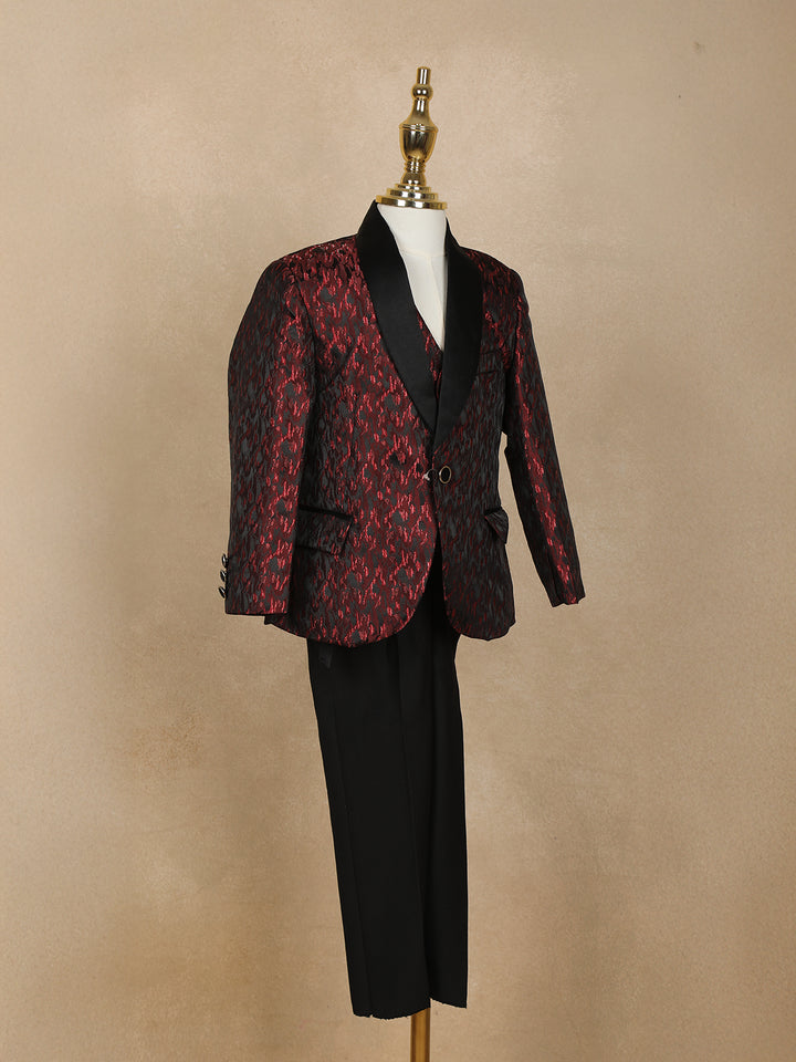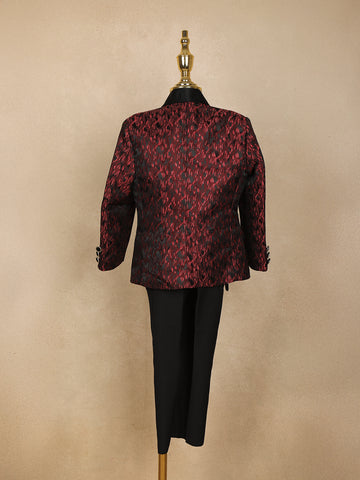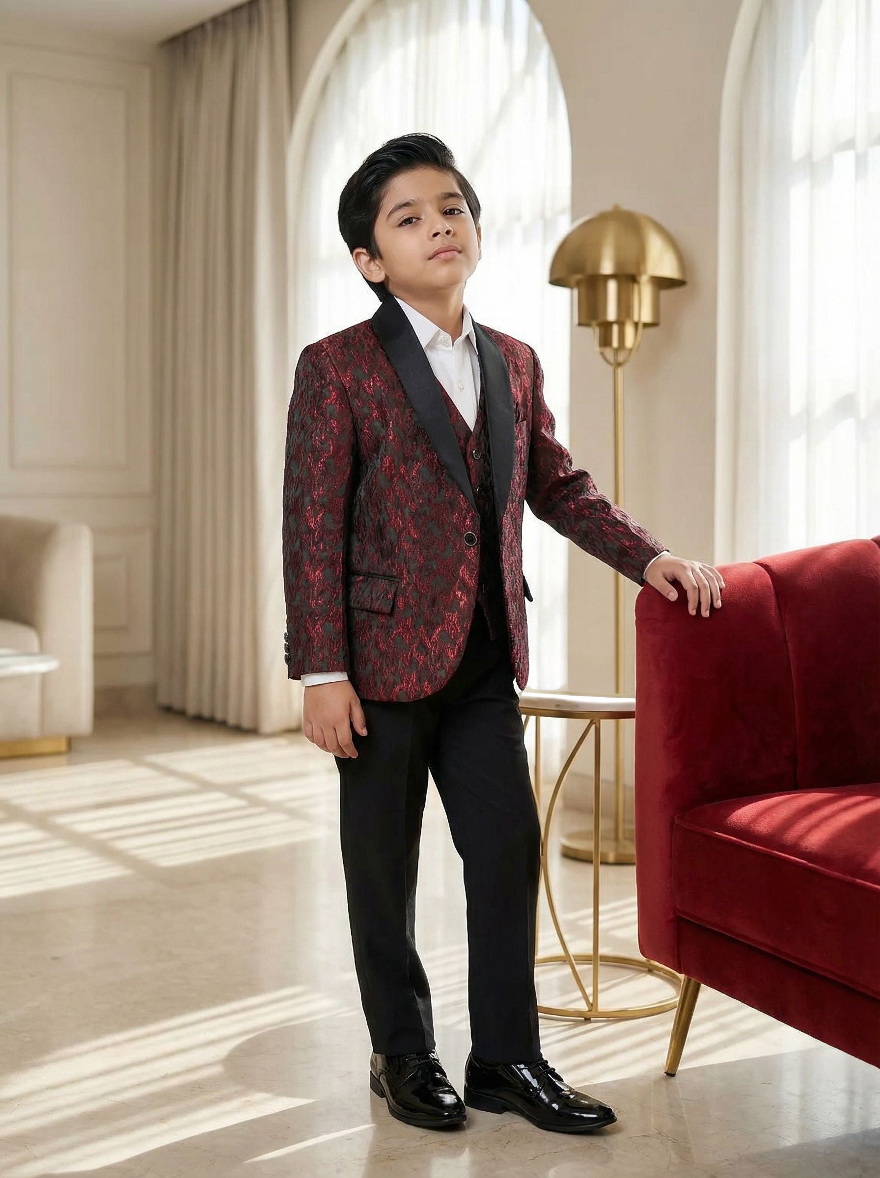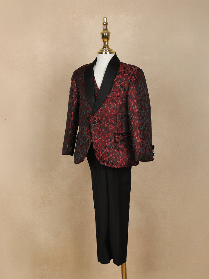 Celebrate your little one's first birthday with this eye-catching red coat suit adorned with glitter designs. Perfect for 1st year birthday wear, this suit features a closed neck and full sleeves, offering a classic and sophisticated look. The sparkling glitter work adds a festive and charming touch, making your child stand out on their special day. Suitable for all seasons, this outfit combines style and comfort, ensuring your child looks dapper and feels at ease throughout the celebration.