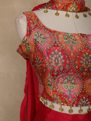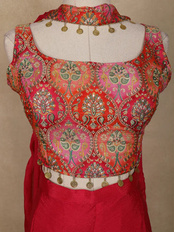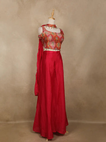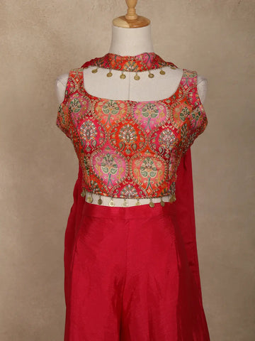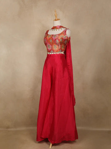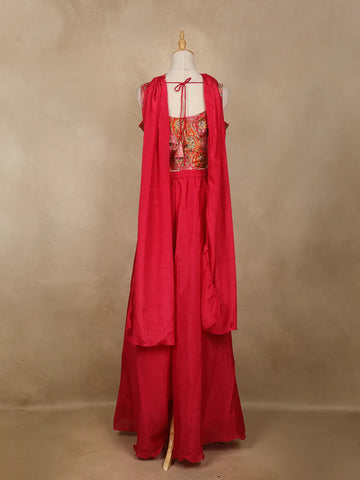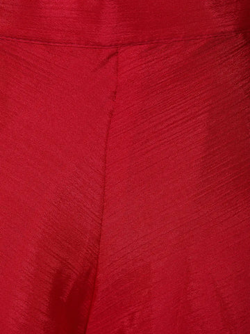 Perfect for festivals, wedding functions, or evening parties, this red palazzo suit is an ideal choice for women who want to make a bold yet graceful statement.