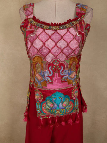 A refined fusion of contemporary styling and artisanal handwork, this palazzo suit captures the essence of modern glam with ethnic elegance.