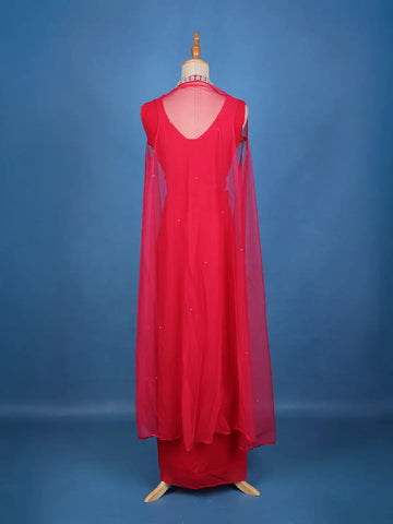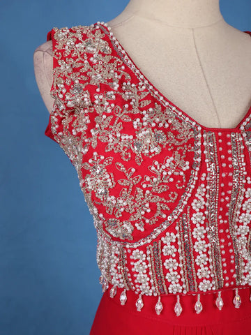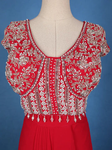 Red Embroidered Design Georgette Skirt Top