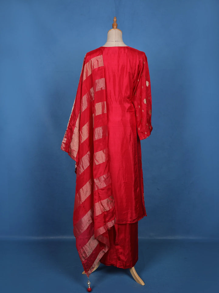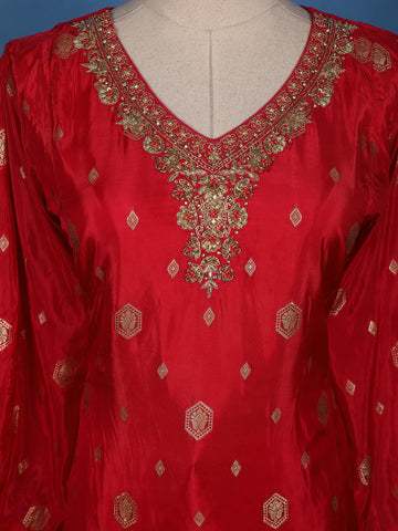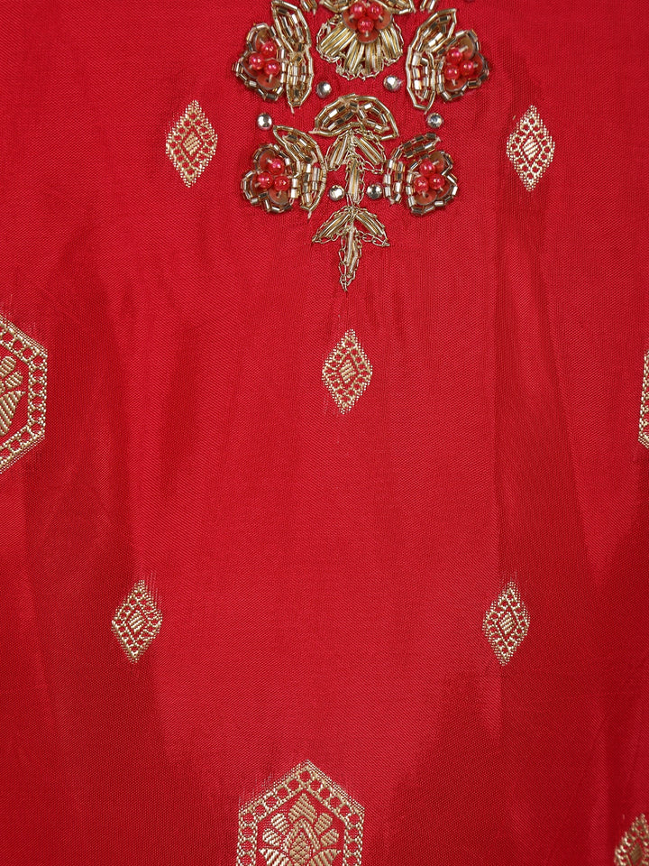 Red Floral And Geometric Embroidered Silk Salwar Suit