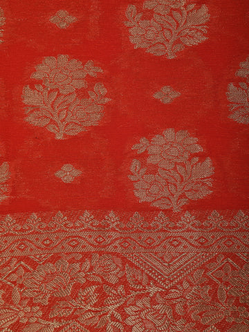 Red Floral Butta Woven Banarasi Silk Saree With Zari Border