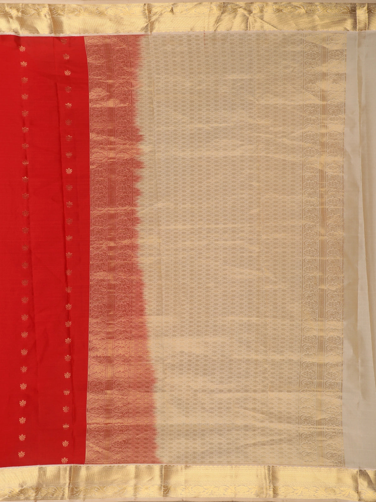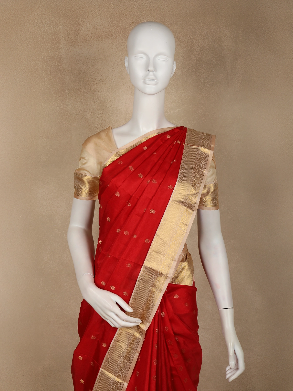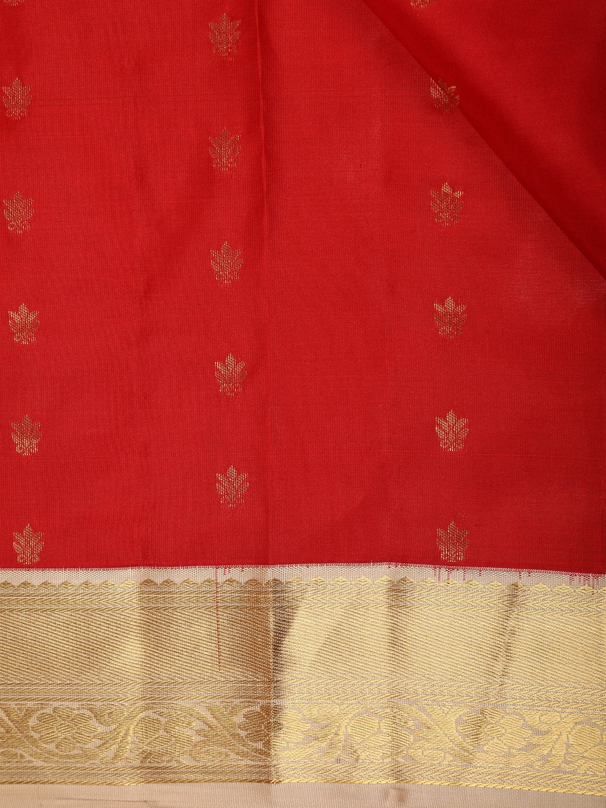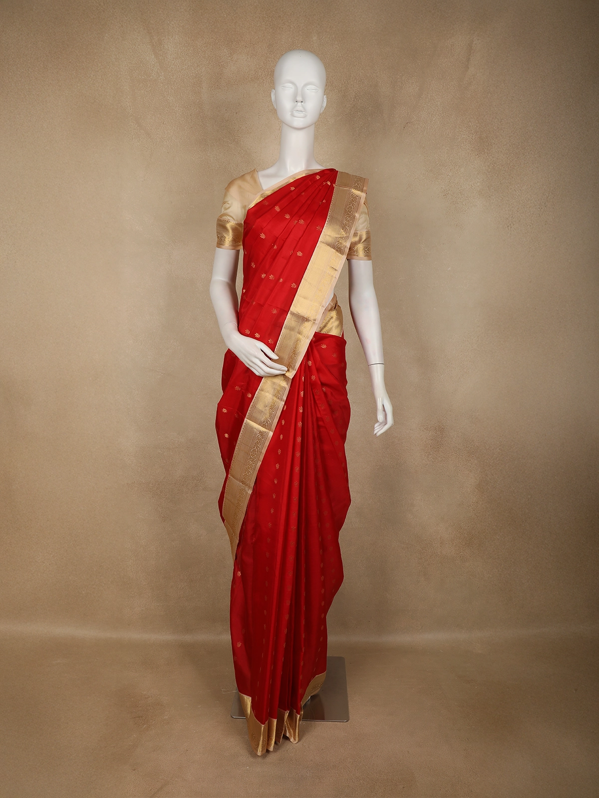 Red Floral Butta Woven Kanchipuram Silk Saree with Gold Zari Border