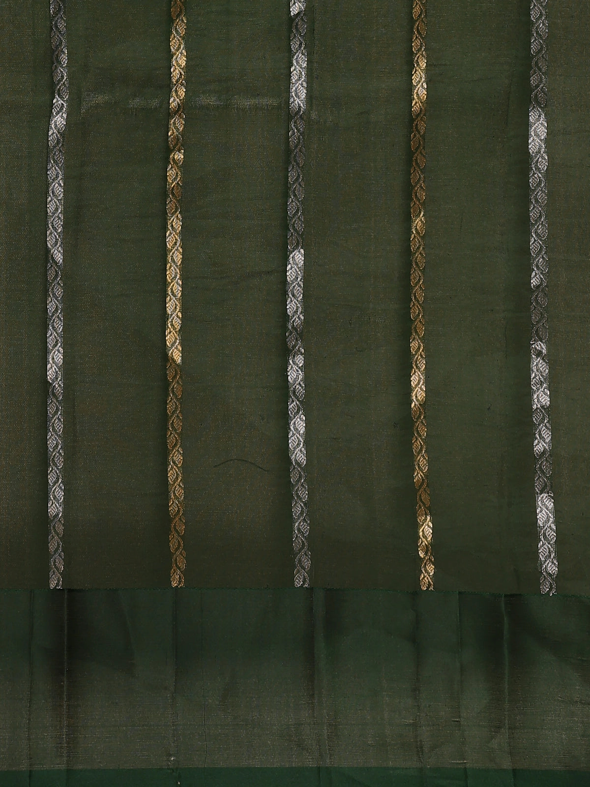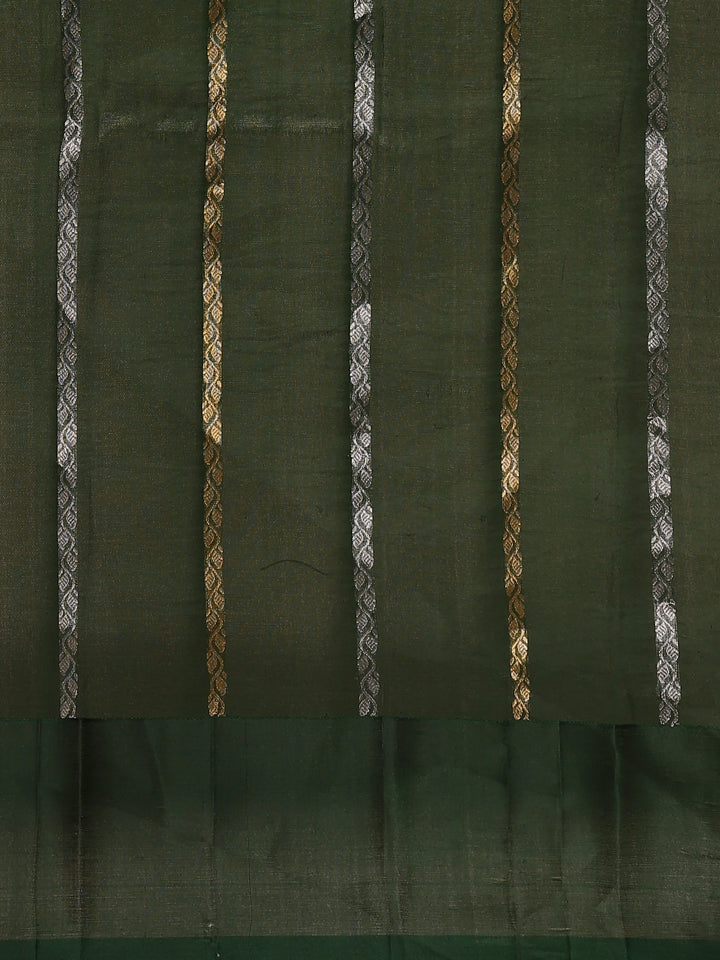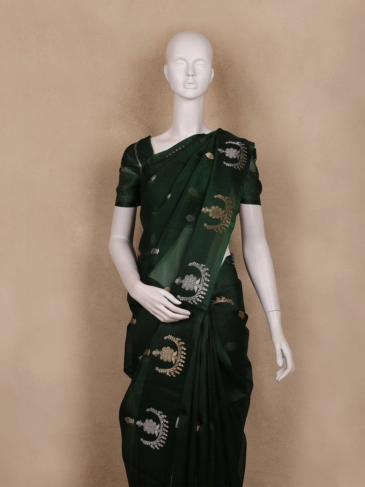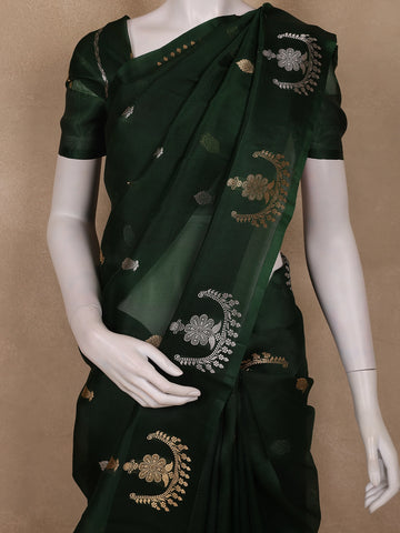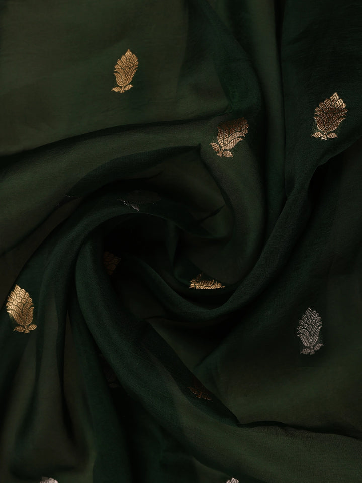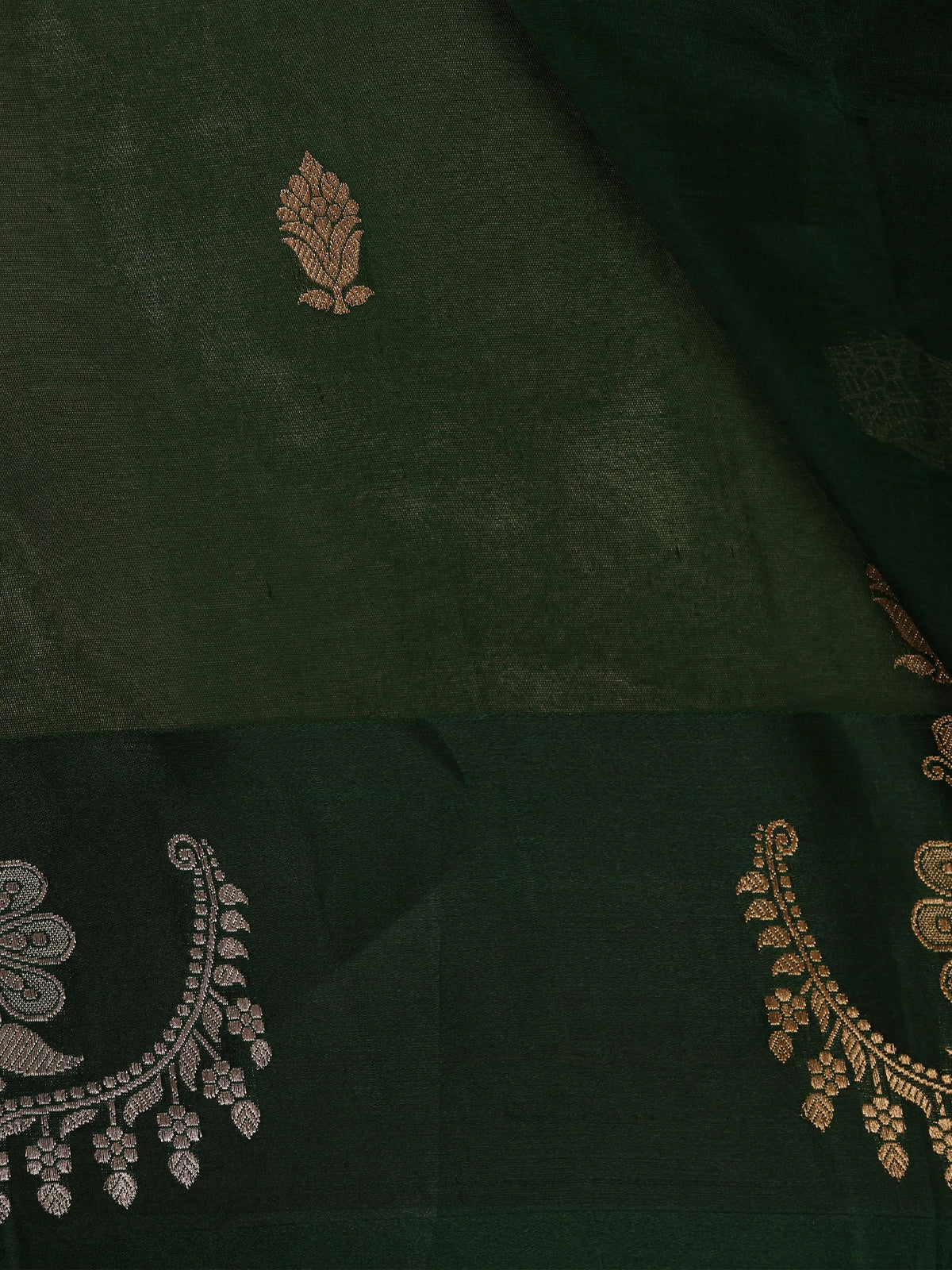 Bottle Green Floral Butta Woven Katan Banarasi Saree