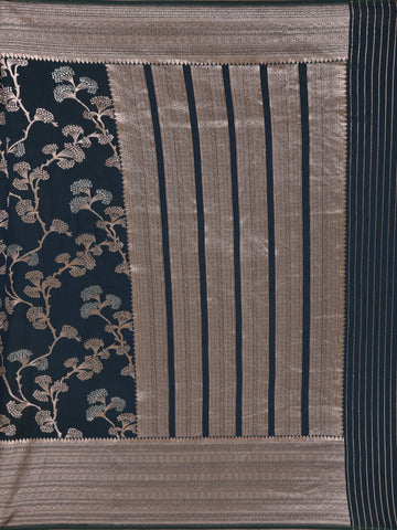 Navy Blue Floral Design Banarasi Saree