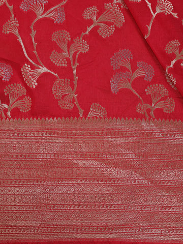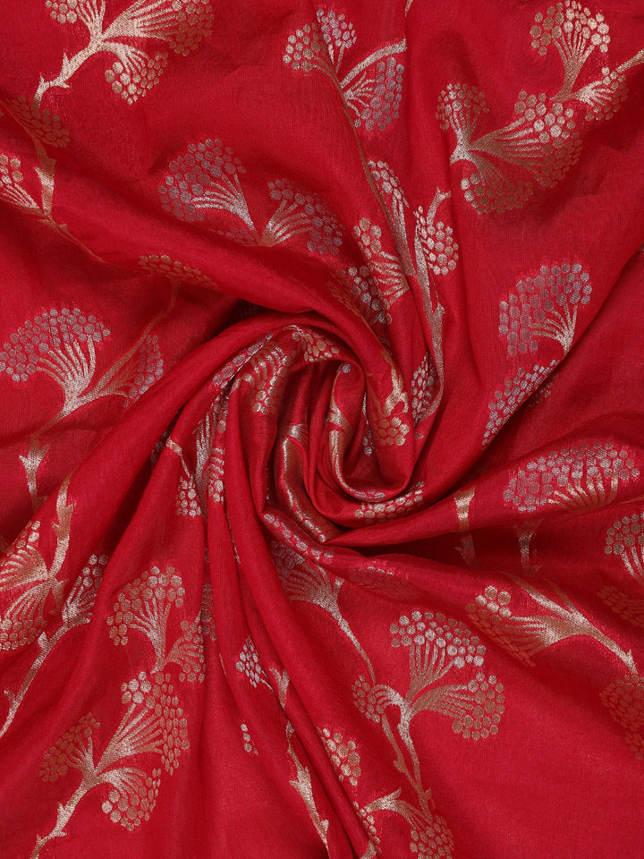 Radiate regal splendor with this Red Floral Design Banarasi Saree, a timeless creation that captures the essence of traditional elegance. The rich red silk body is beautifully woven with exquisite floral zari motifs, creating a mesmerizing interplay of sheen and texture that celebrates the artistry of Banaras weaving.