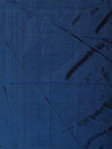 The contrasting navy blue pallu steals the spotlight with its intricate zari weaving inspired by traditional motifs, creating a rich and regal aesthetic. Paired with a matching navy blue blouse piece, this saree offers a bold and sophisticated colour combination perfect for all festive and special occasions.