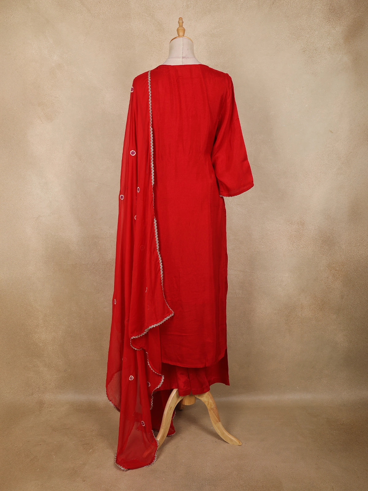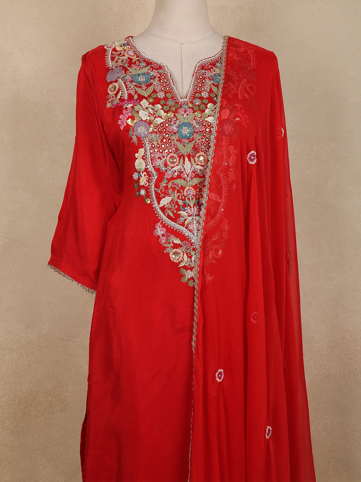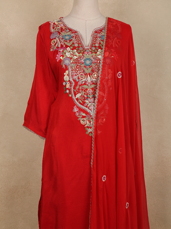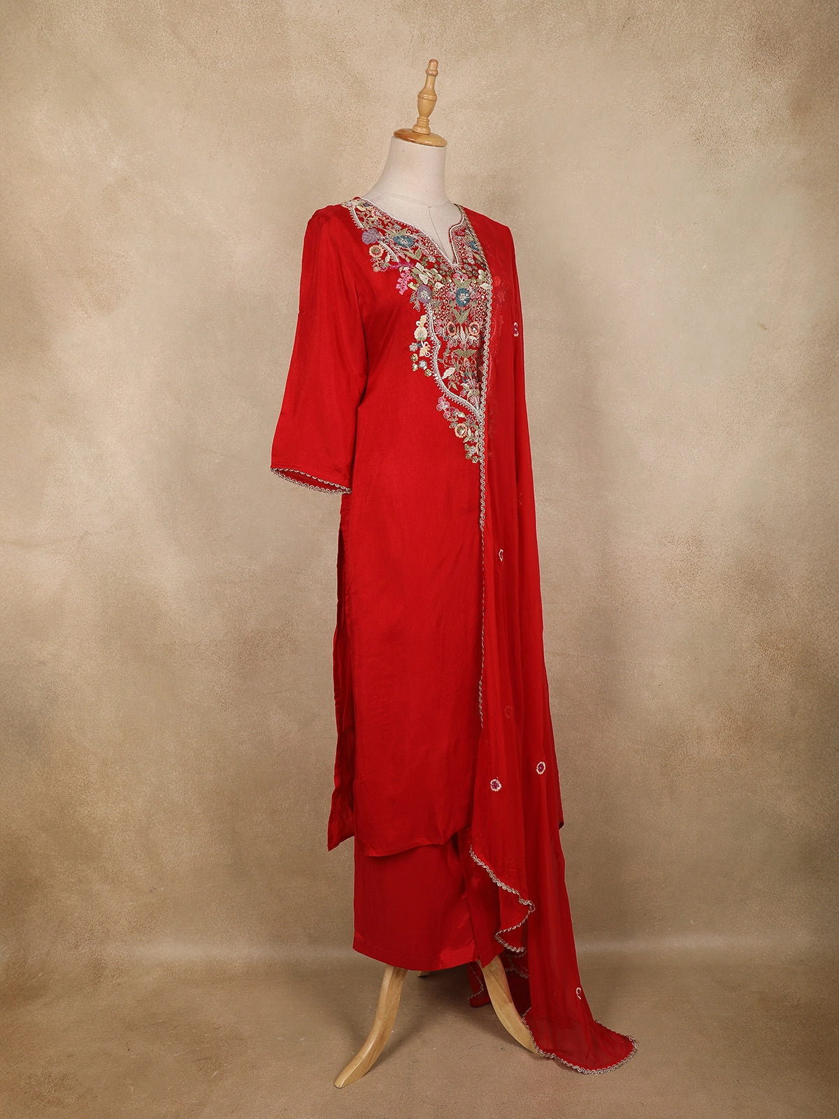 Red Floral Embroidered Cotton Salwar Suit with Dupatta