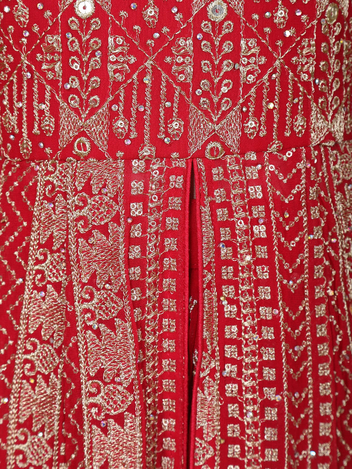 Bright, festive, and charming — this Red Floral Embroidered Georgette Palazzo Suit is designed to bring out the joy and elegance of special celebrations for your little one. The top features fine floral embroidery that adds a rich traditional touch, making it perfect for festive occasions and family gatherings.