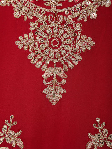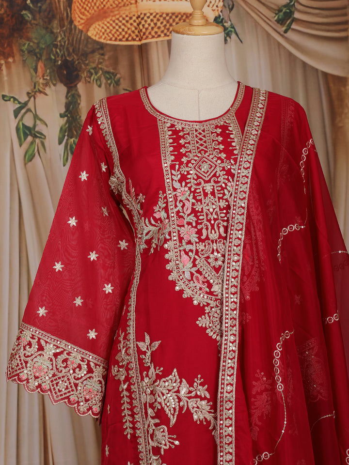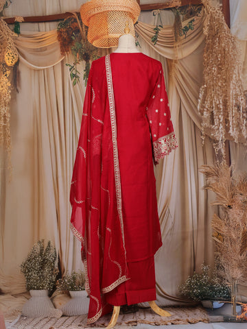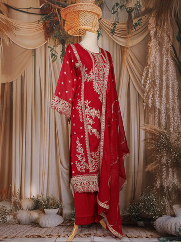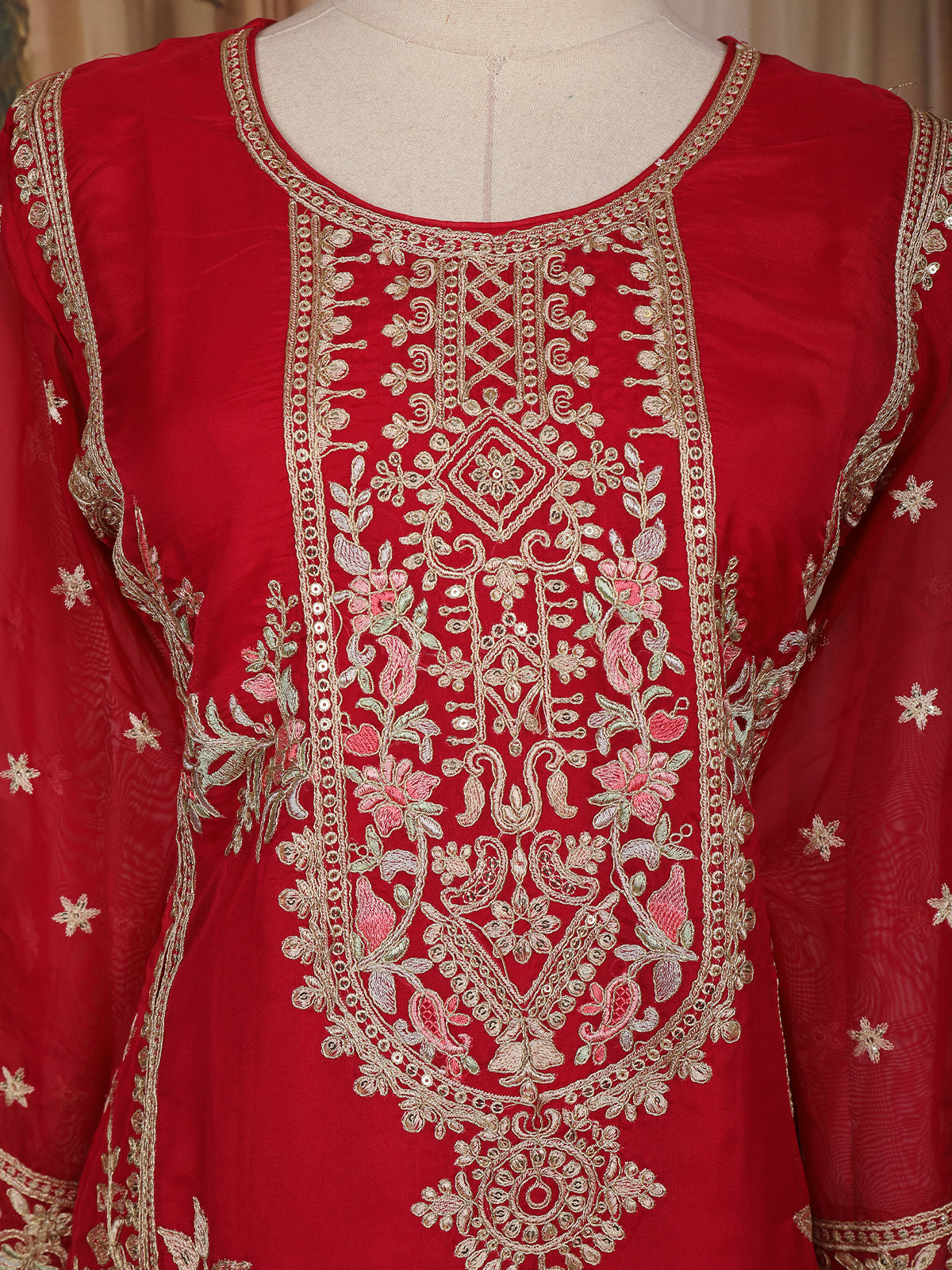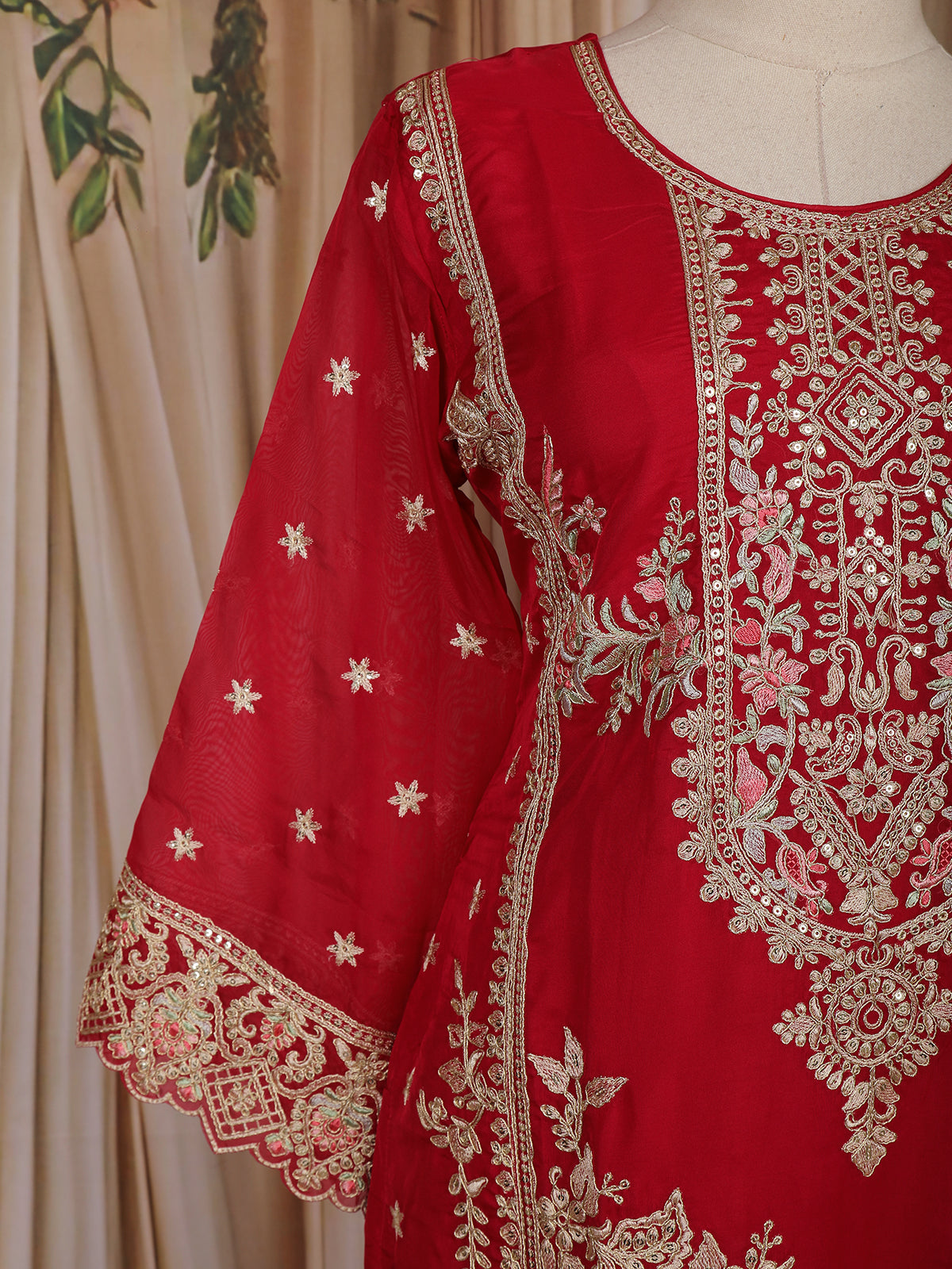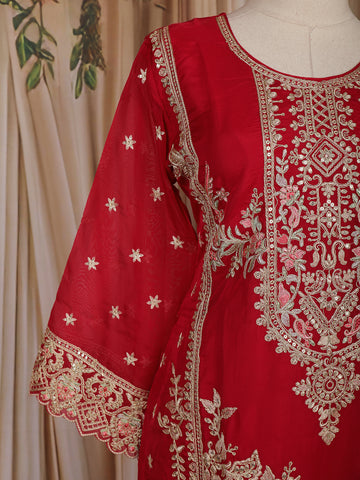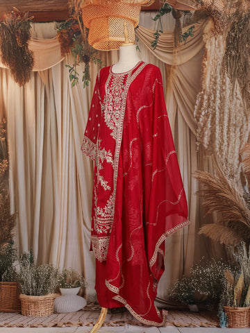 Red Floral Embroidered Silk Salwar Suit with Dupatta