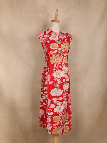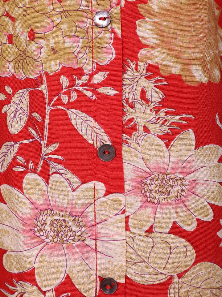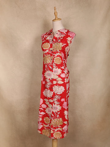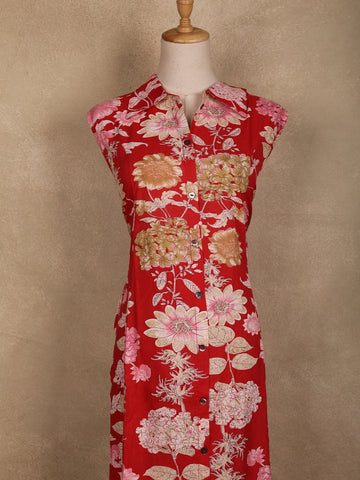 Red Floral Printed Cotton Kurti