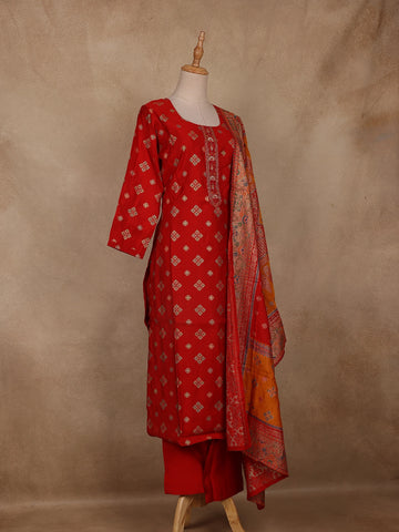 Red Floral Printed Cotton Salwar Suit with Dupatta