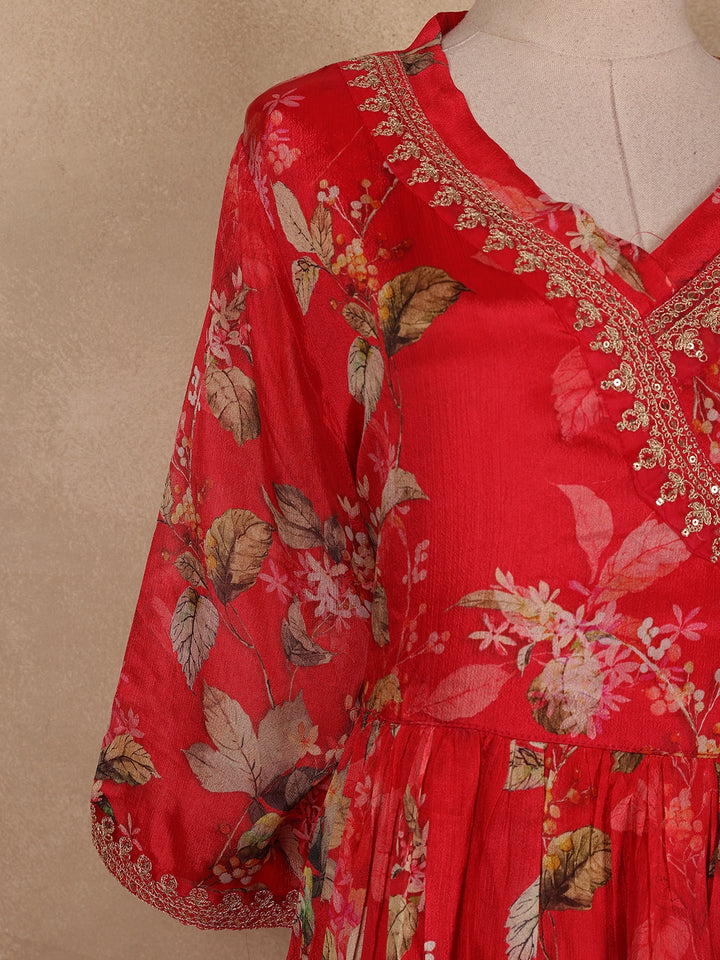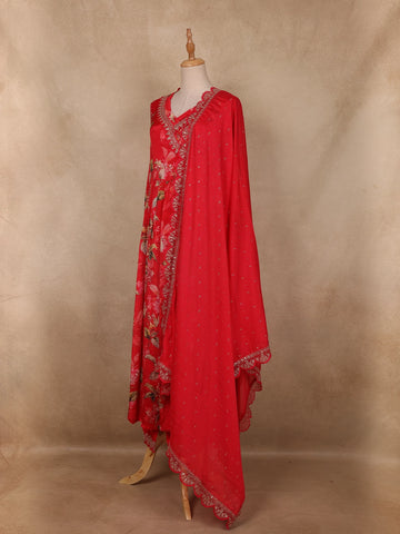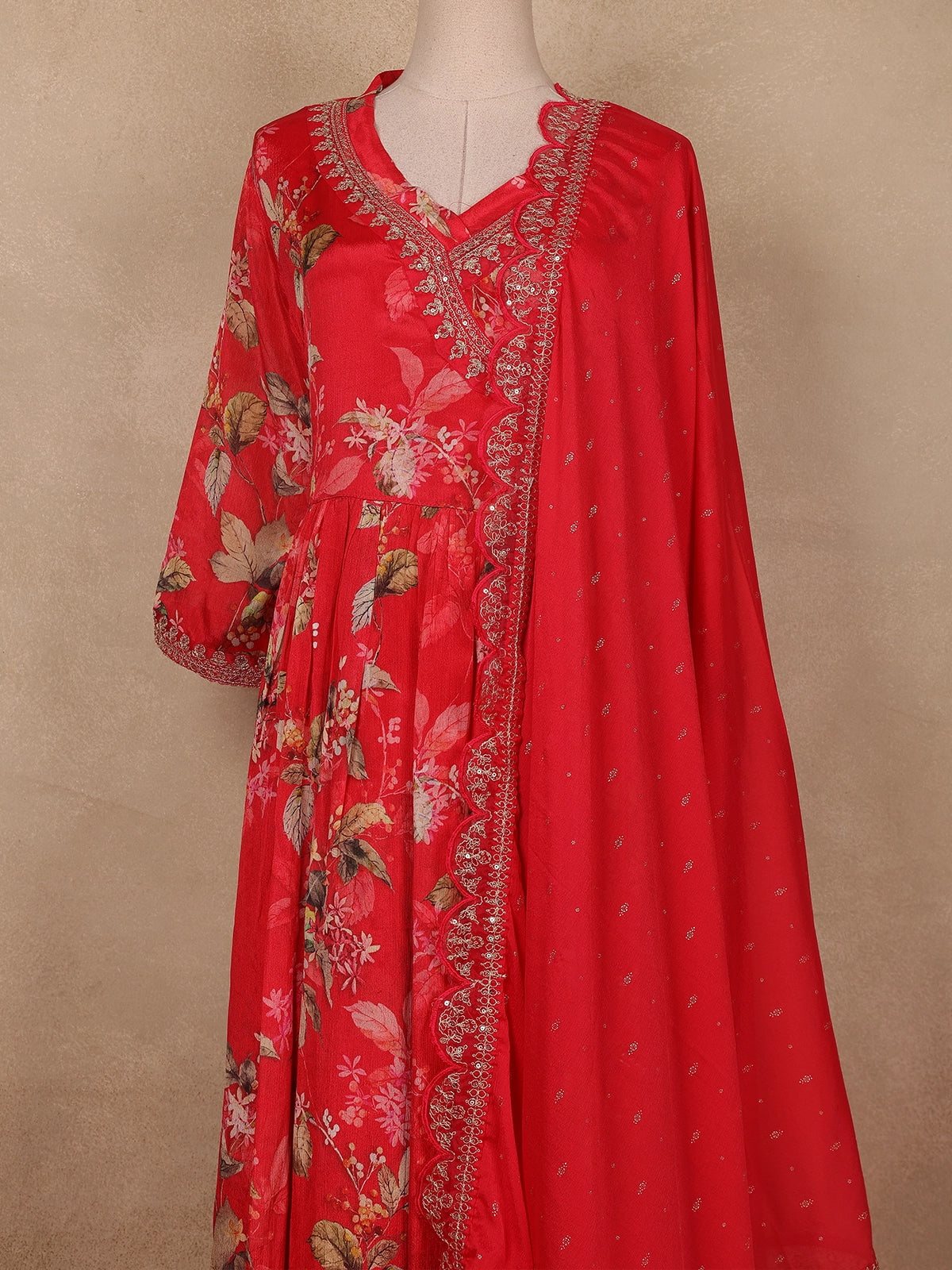 Red Floral Printed Crepe Salwar Suit with Dupatta