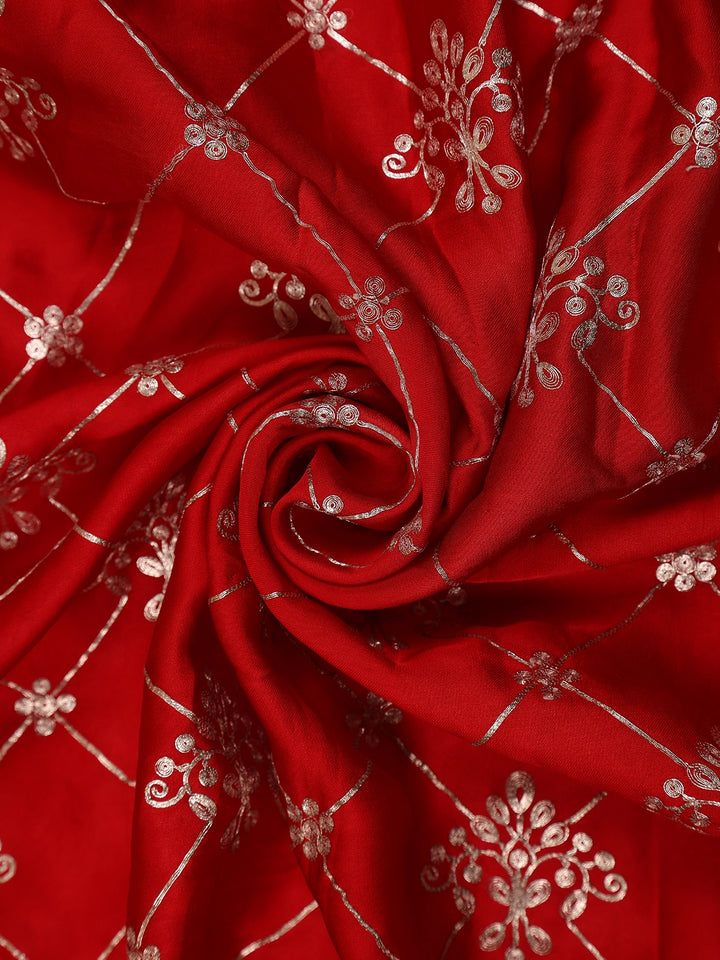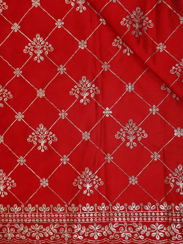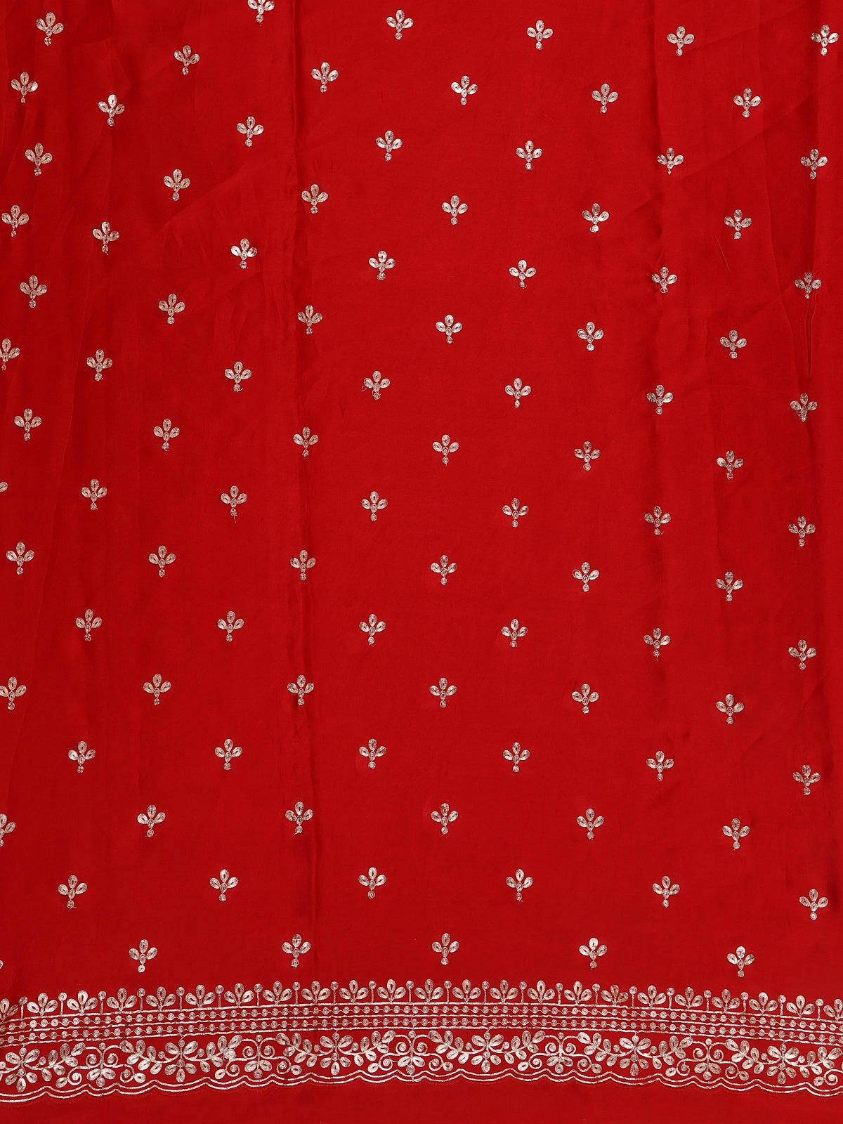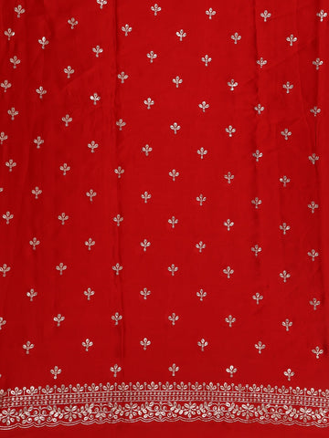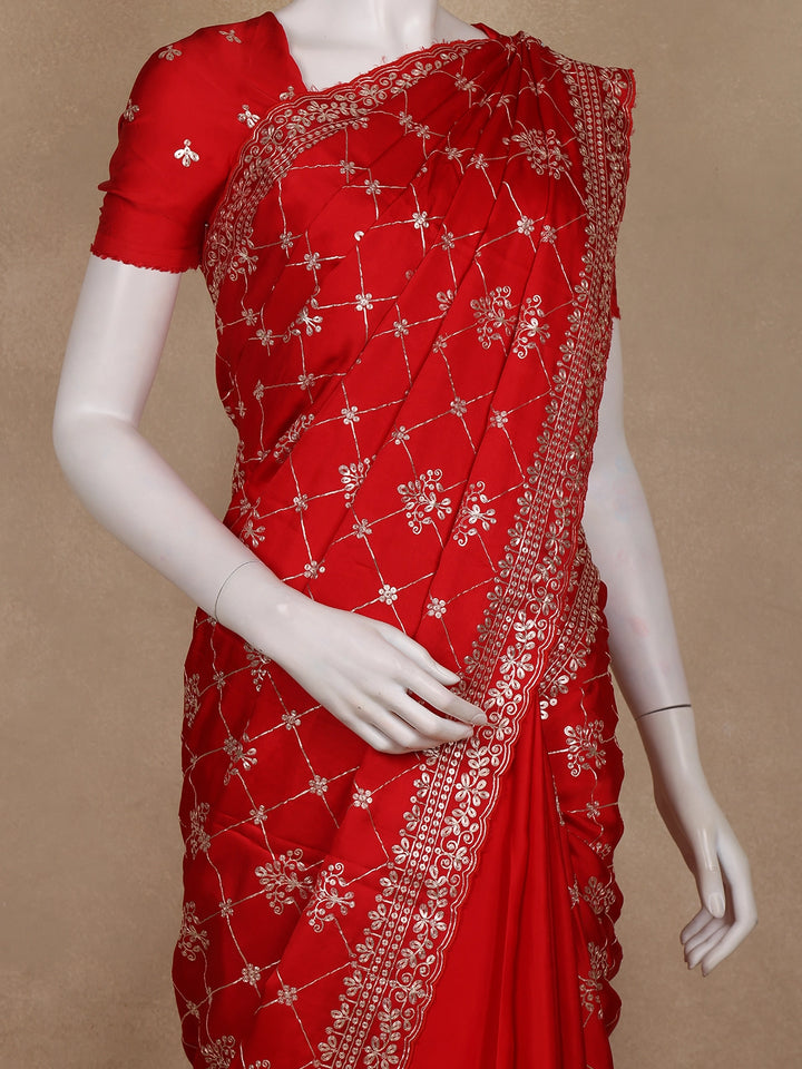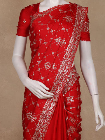 Red Floral Sequins Embroidered Semi Banarasi Saree with Designer Border