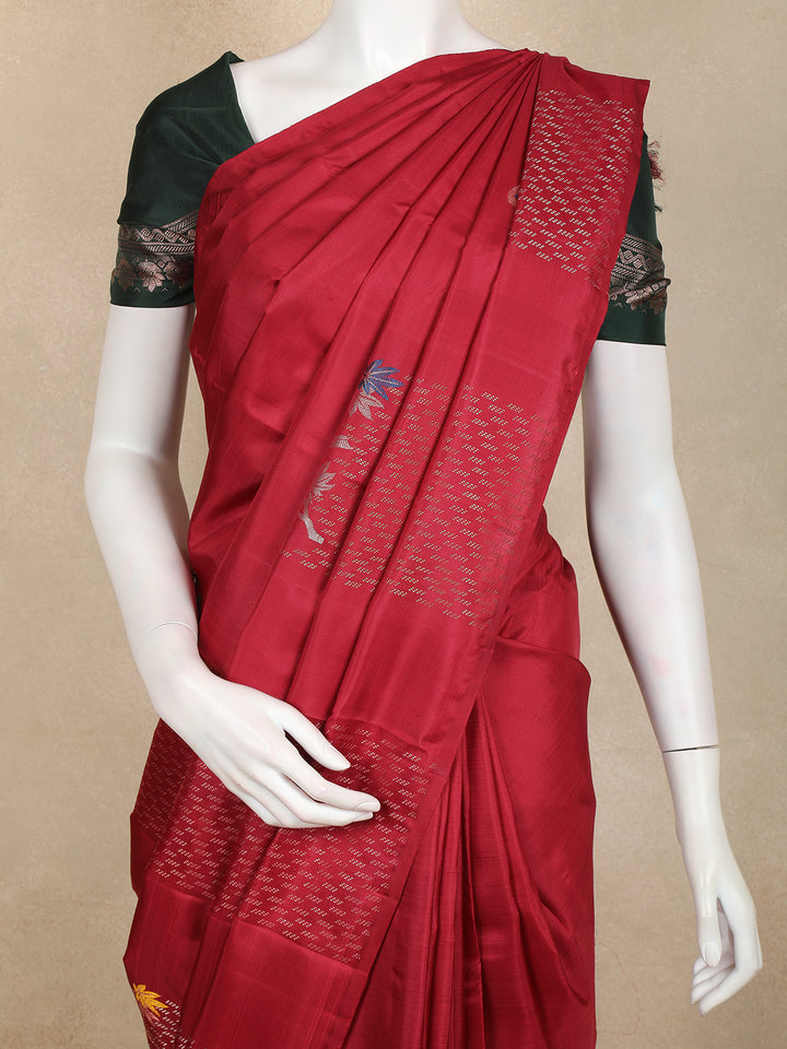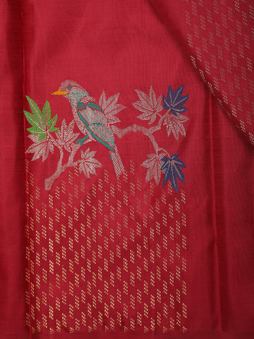 Red Floral Woven Kanchipuram Silk Saree
