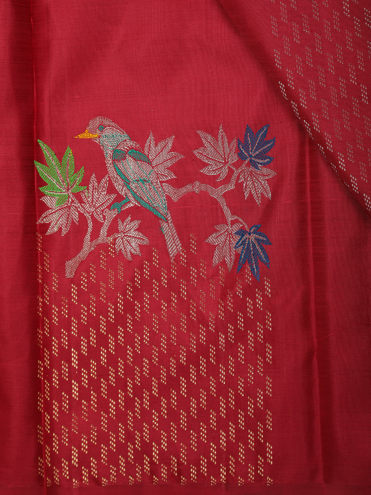 The saree is further elevated with a zari woven border and pallu, adding richness and a festive finish to your ensemble. Ideal for weddings, temple ceremonies, and cultural occasions — this saree is a must-have statement piece in every traditional wardrobe.