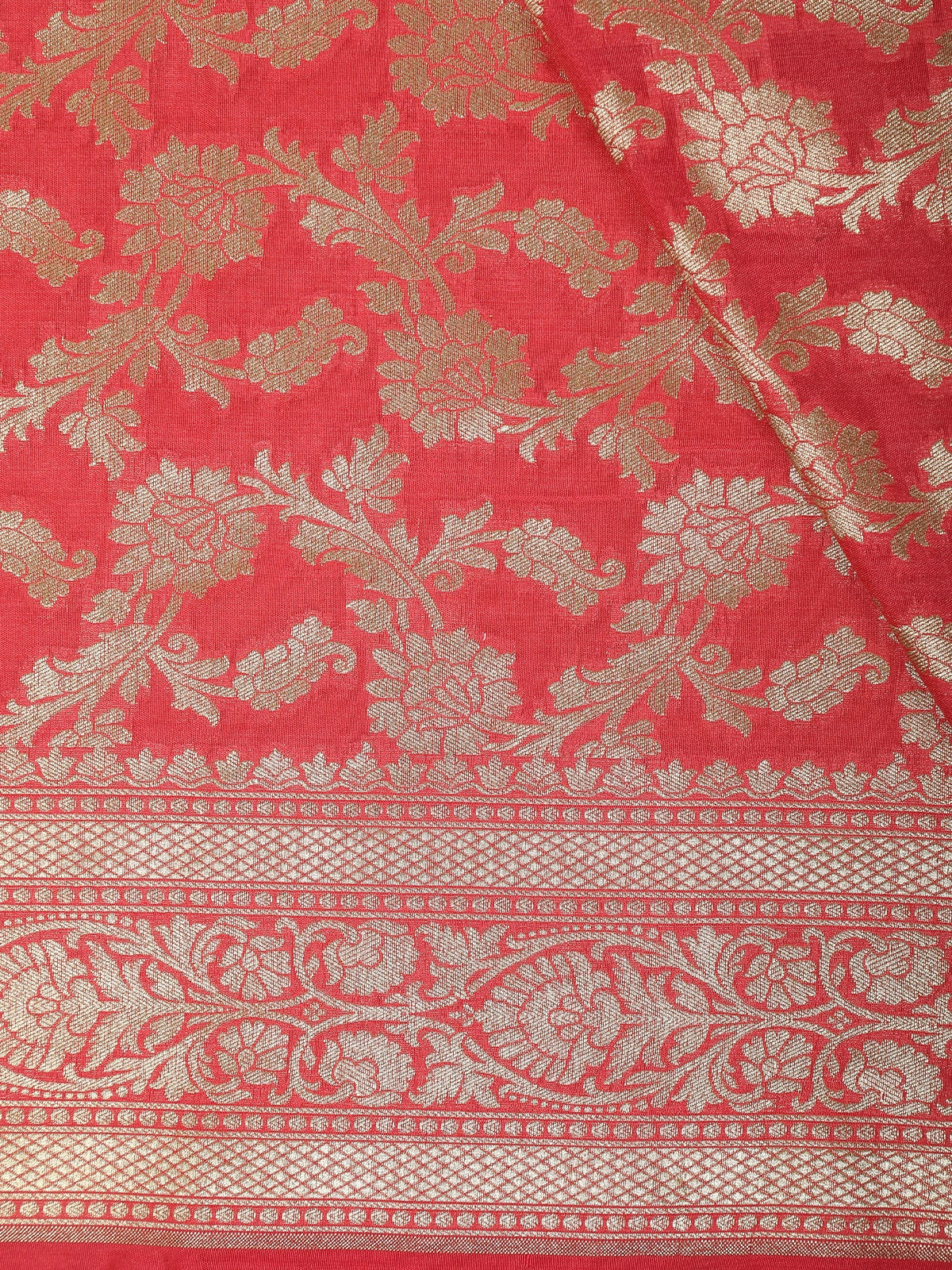Red Floral Zari Woven Design Banarasi Fancy Saree
